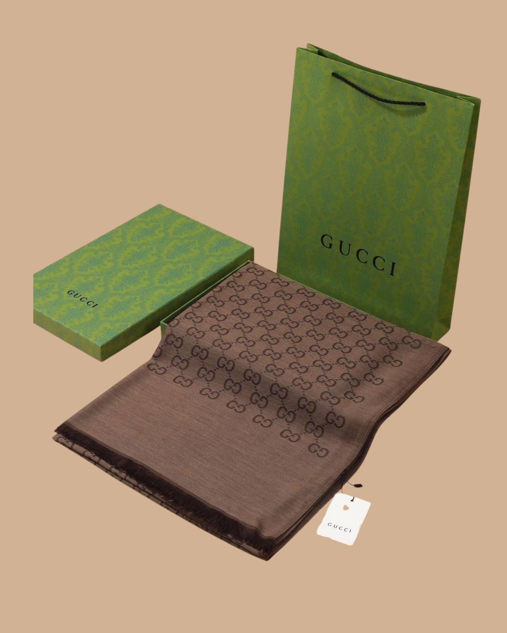 İthal Kahverengi G Desen Yün İpek Şal (LMS143)