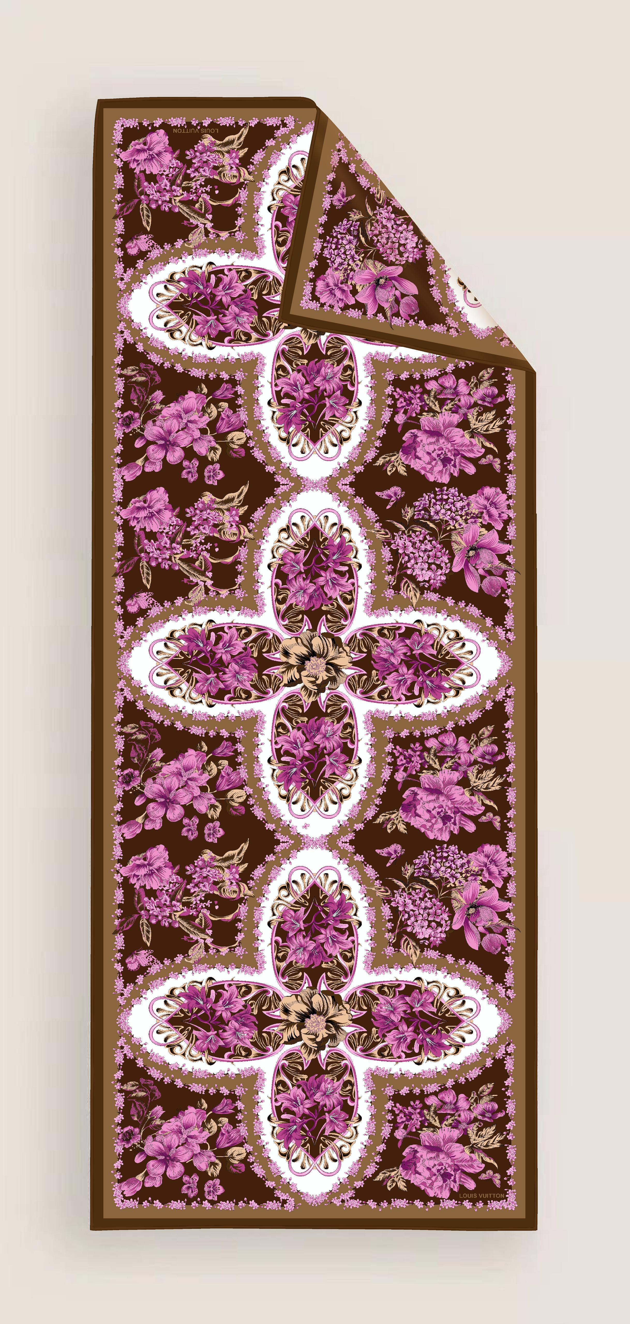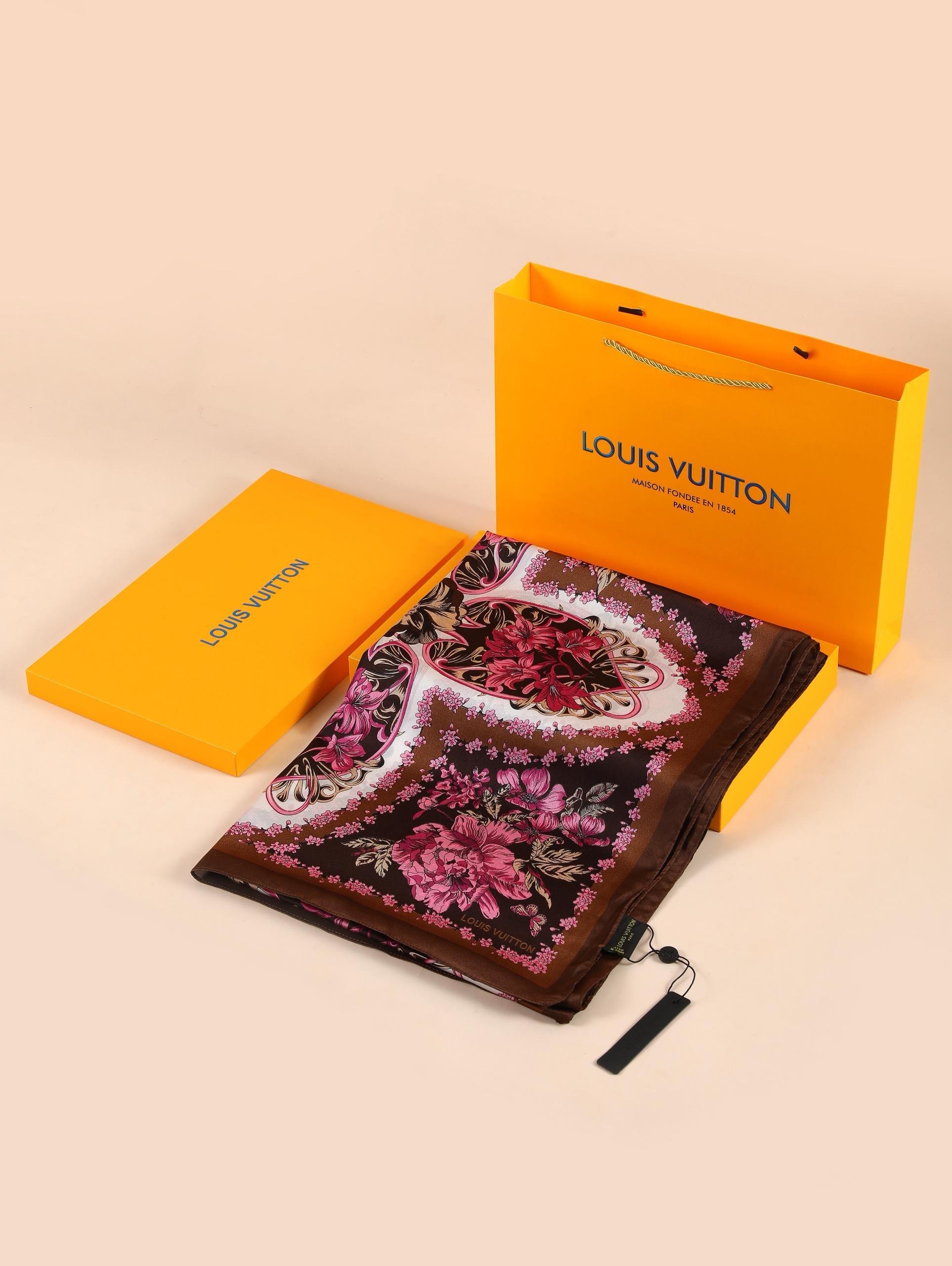 İthal Kahverengi LV 2 Desen Vual İpek Şal (LMS434)