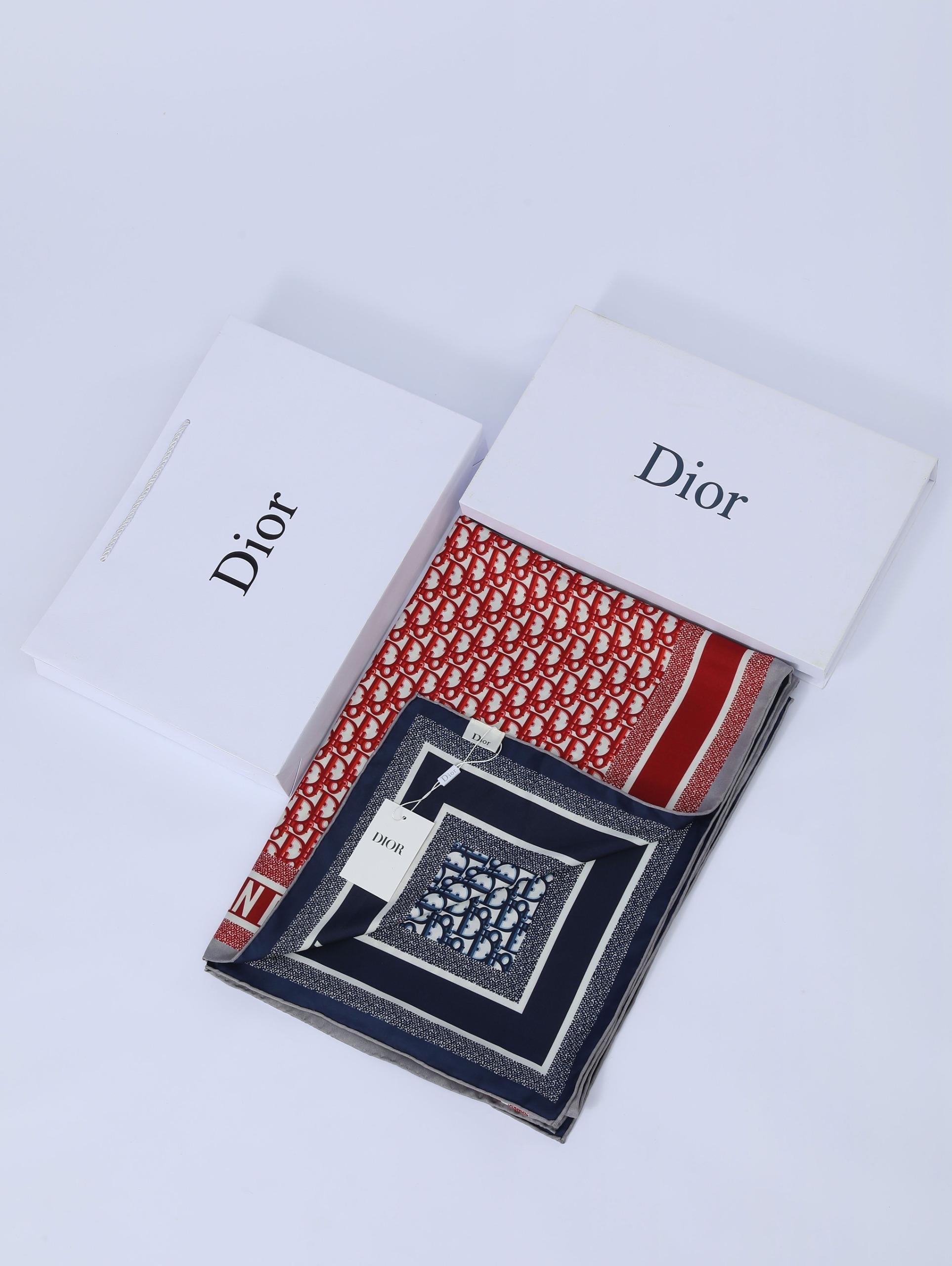 İthal Kırmızı & Lacivert CD Desen Twill İpek Şal (LMS304)