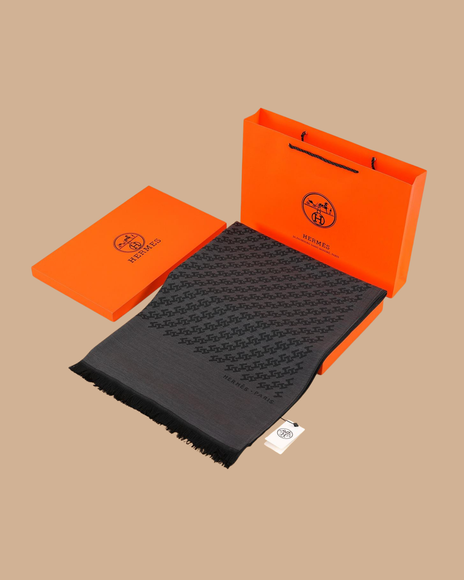 İthal Koyu Füme H Desen Yün İpek Şal (LMS130)