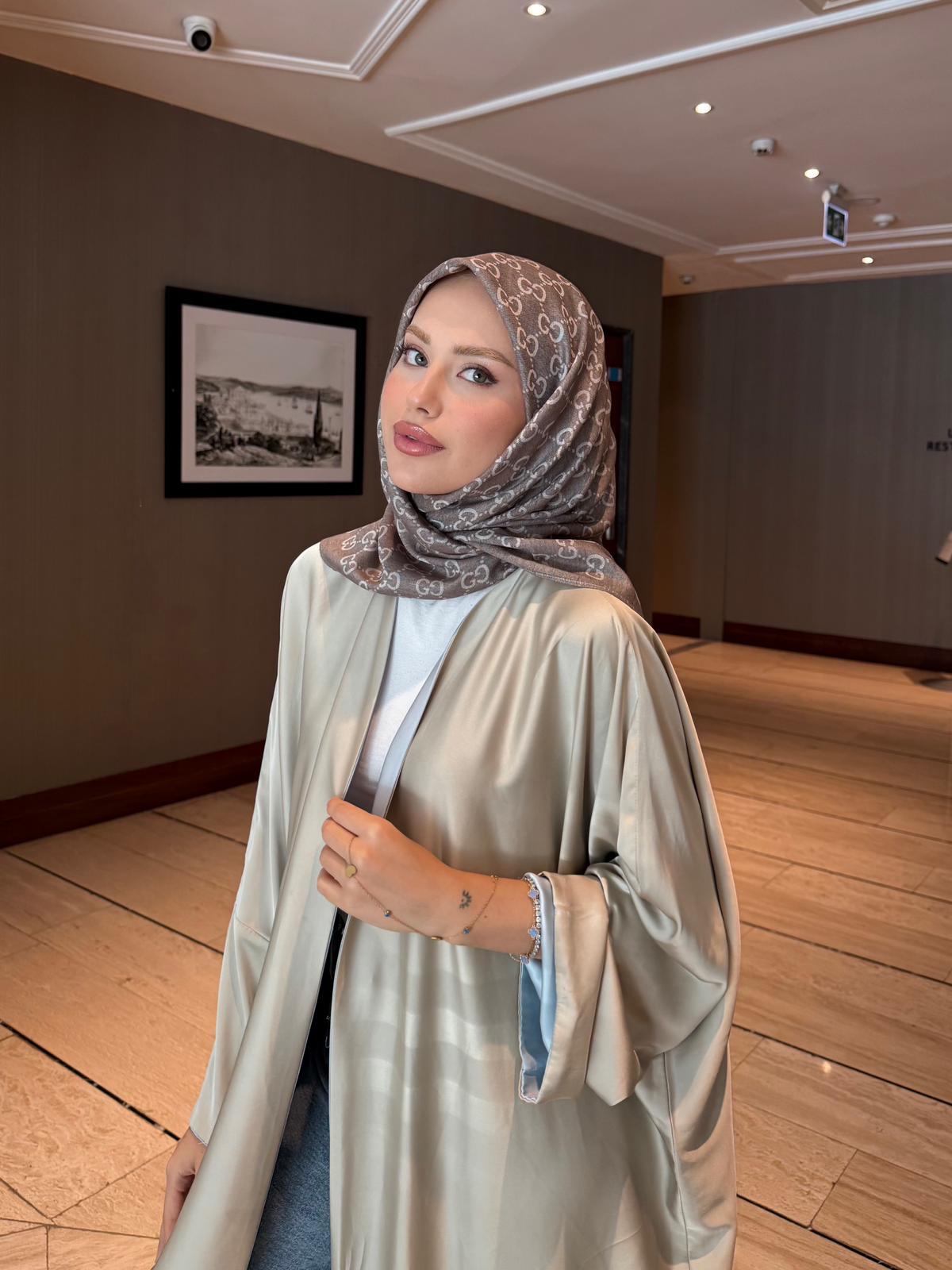 İthal Koyu Vizon G Desen Yün İpek Eşarp (LMS262)