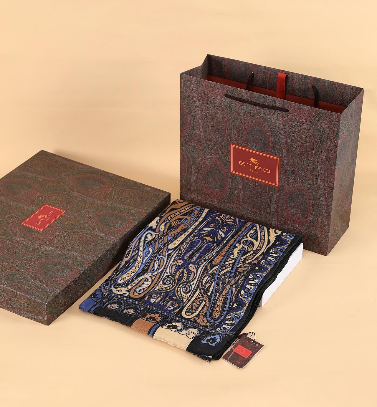 İthal Lacivert & Bej E Desen Yün Kaşmir Şal (LMS355)