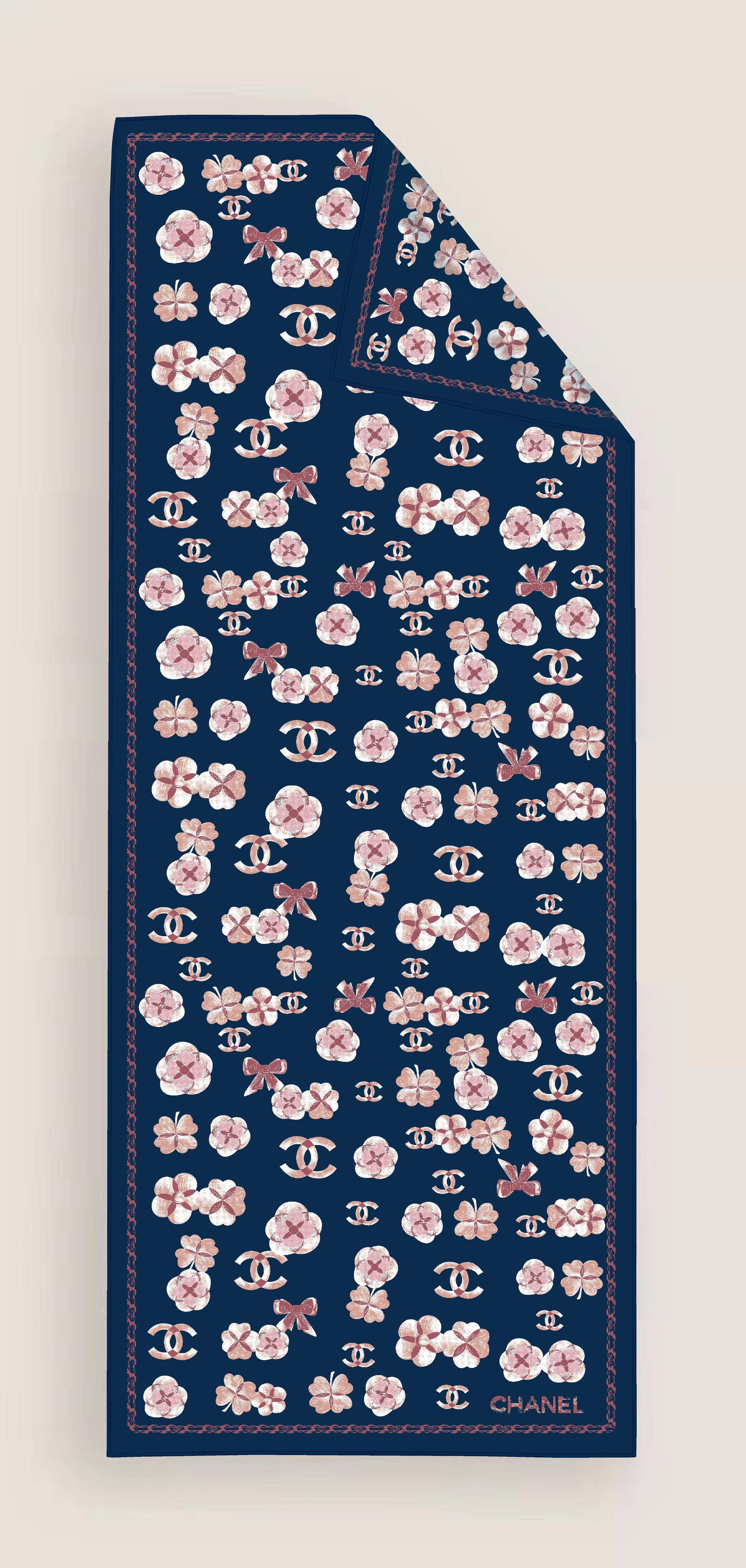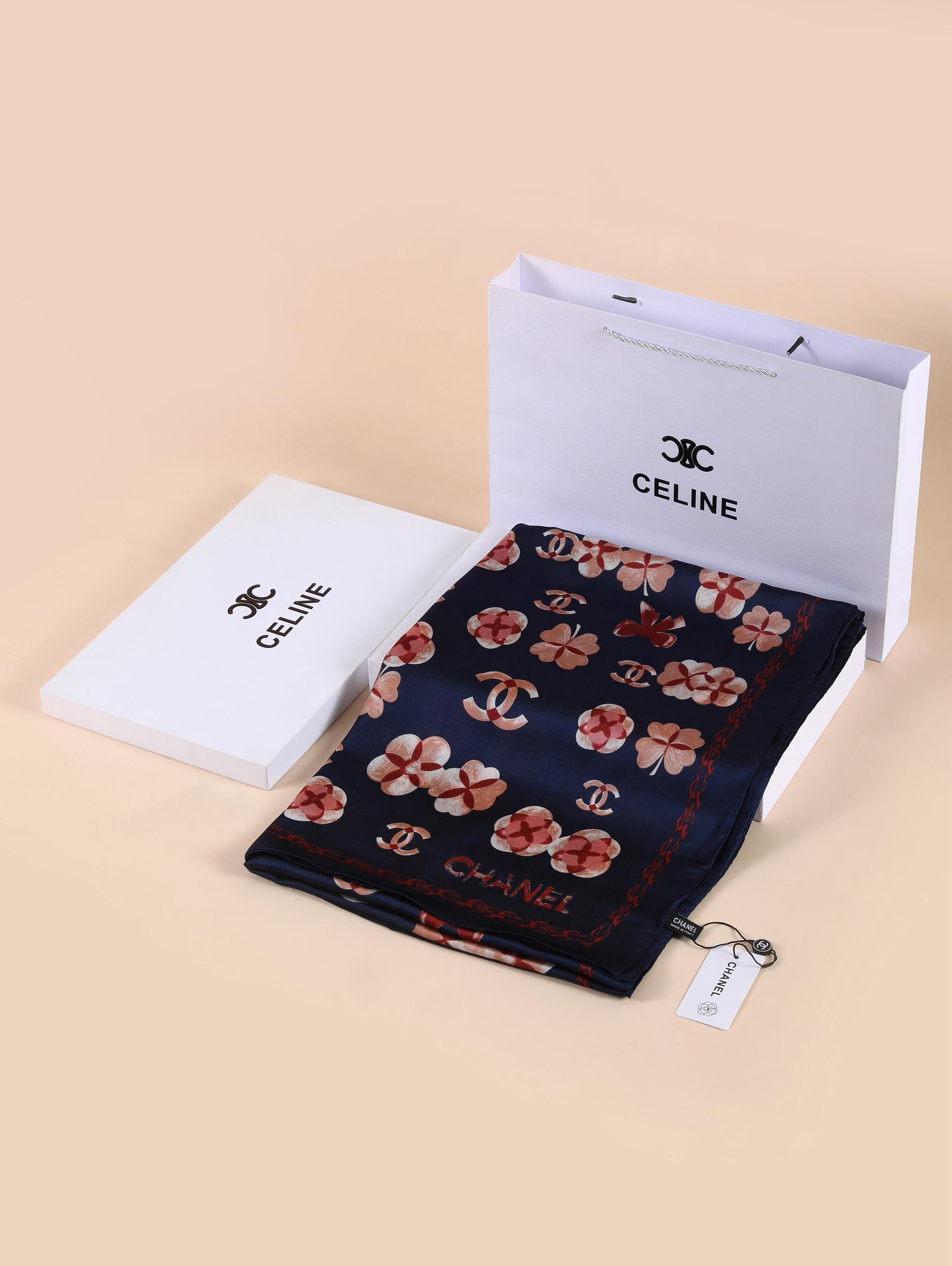 İthal Lacivert CH Desen Vual İpek Şal (LMS407)