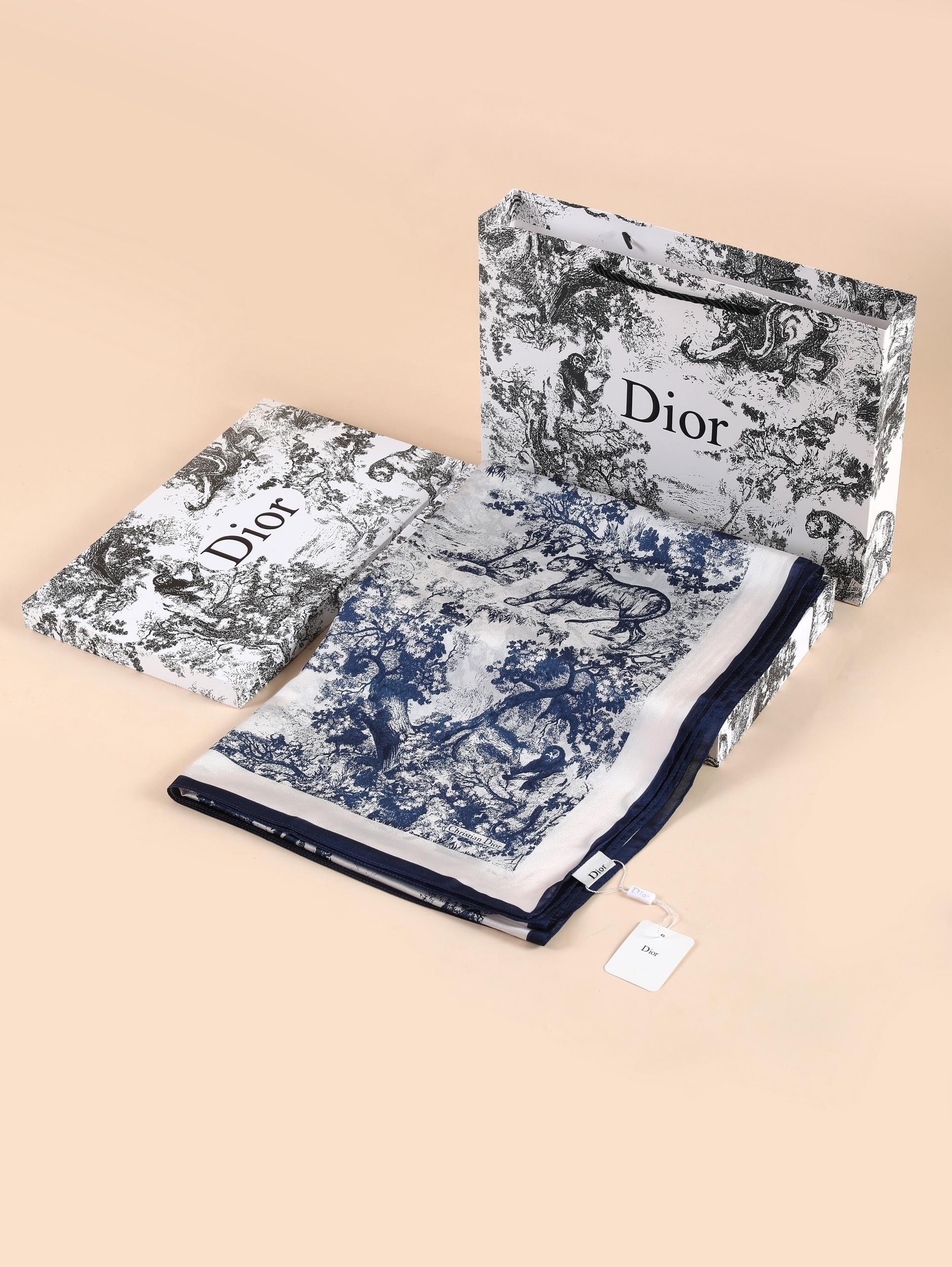 İthal Lacivert D 2 Desen Vual İpek Şal (LMS413)