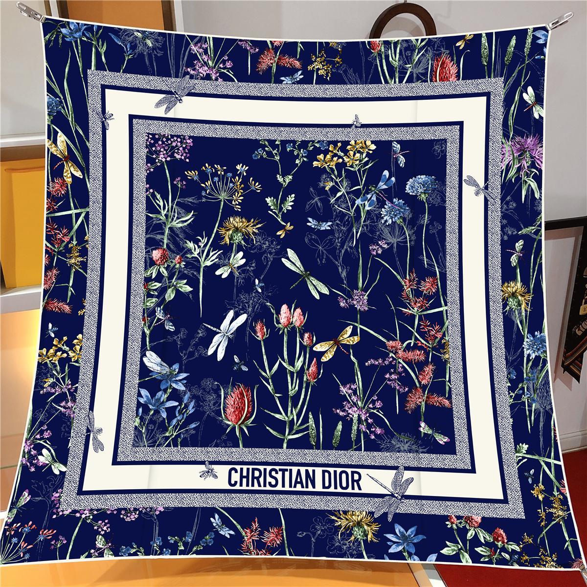 İthal Lacivert D Flower Desen Twill İpek Eşarp (LMS556)