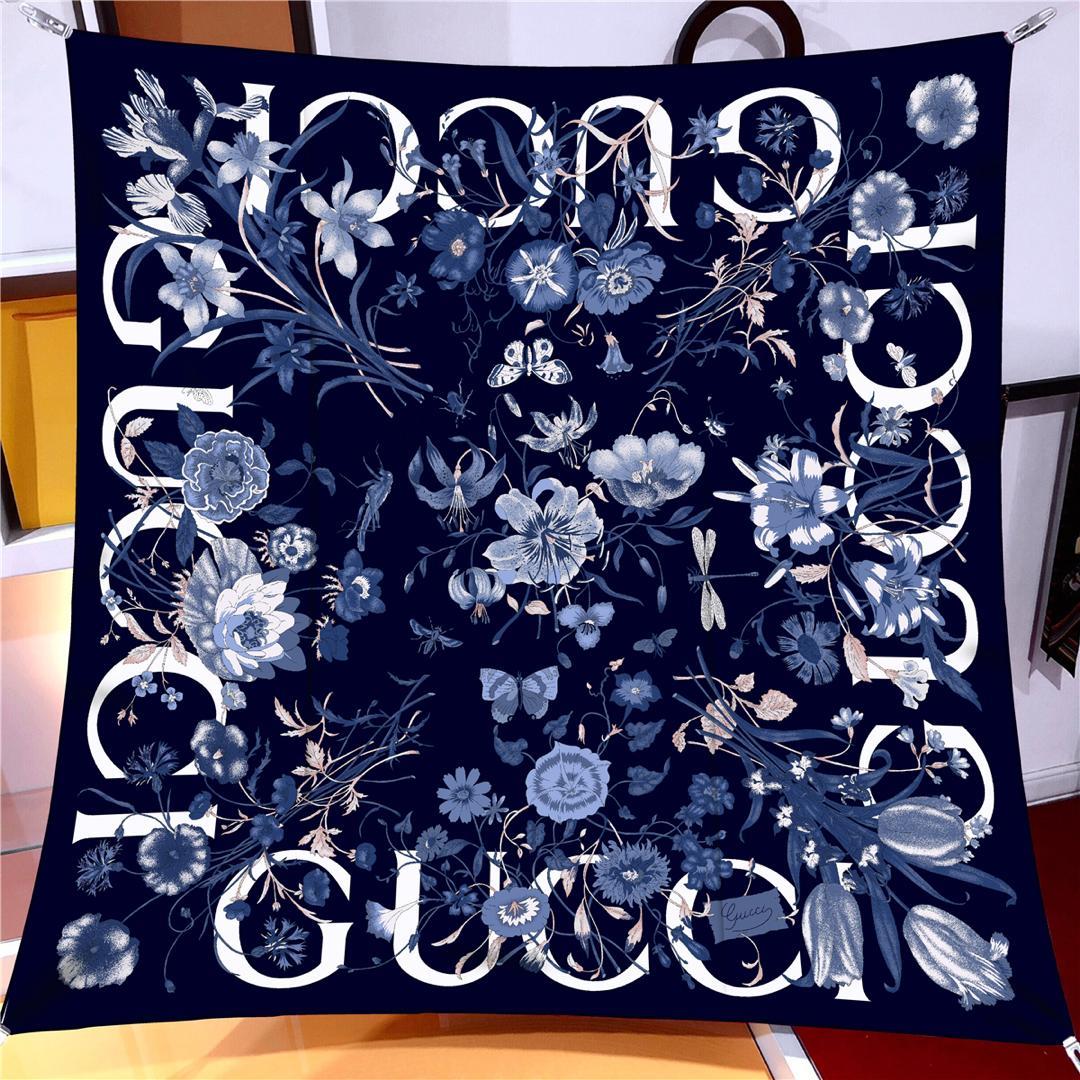 İthal Lacivert G Flower Desen Twill İpek Eşarp (LMS450)