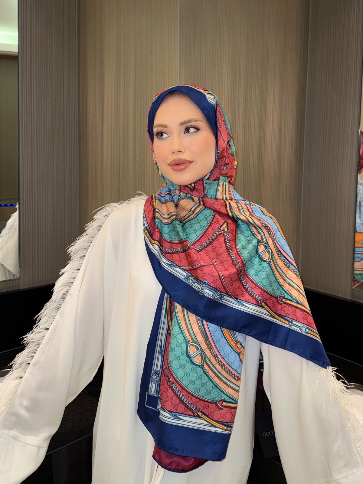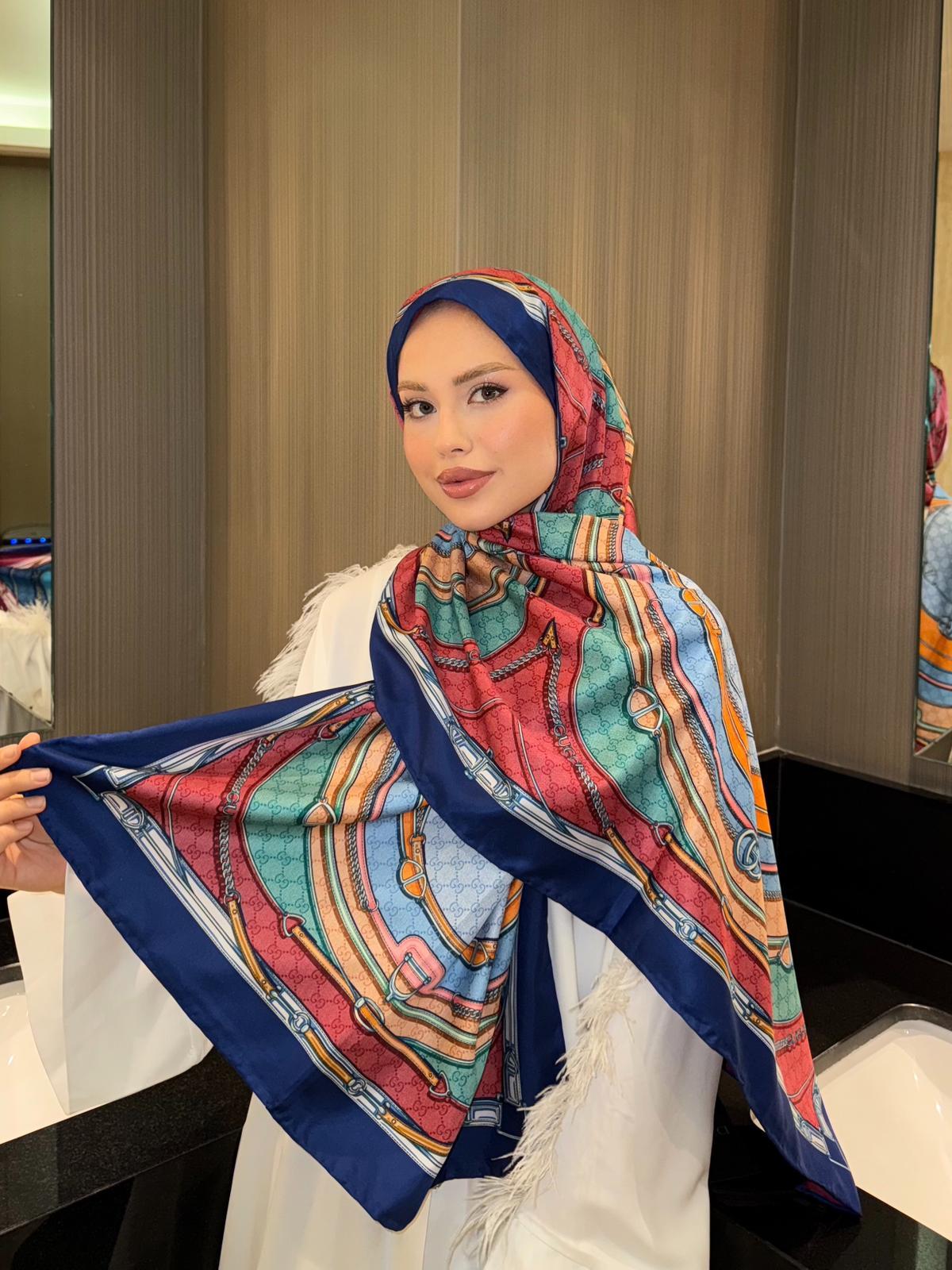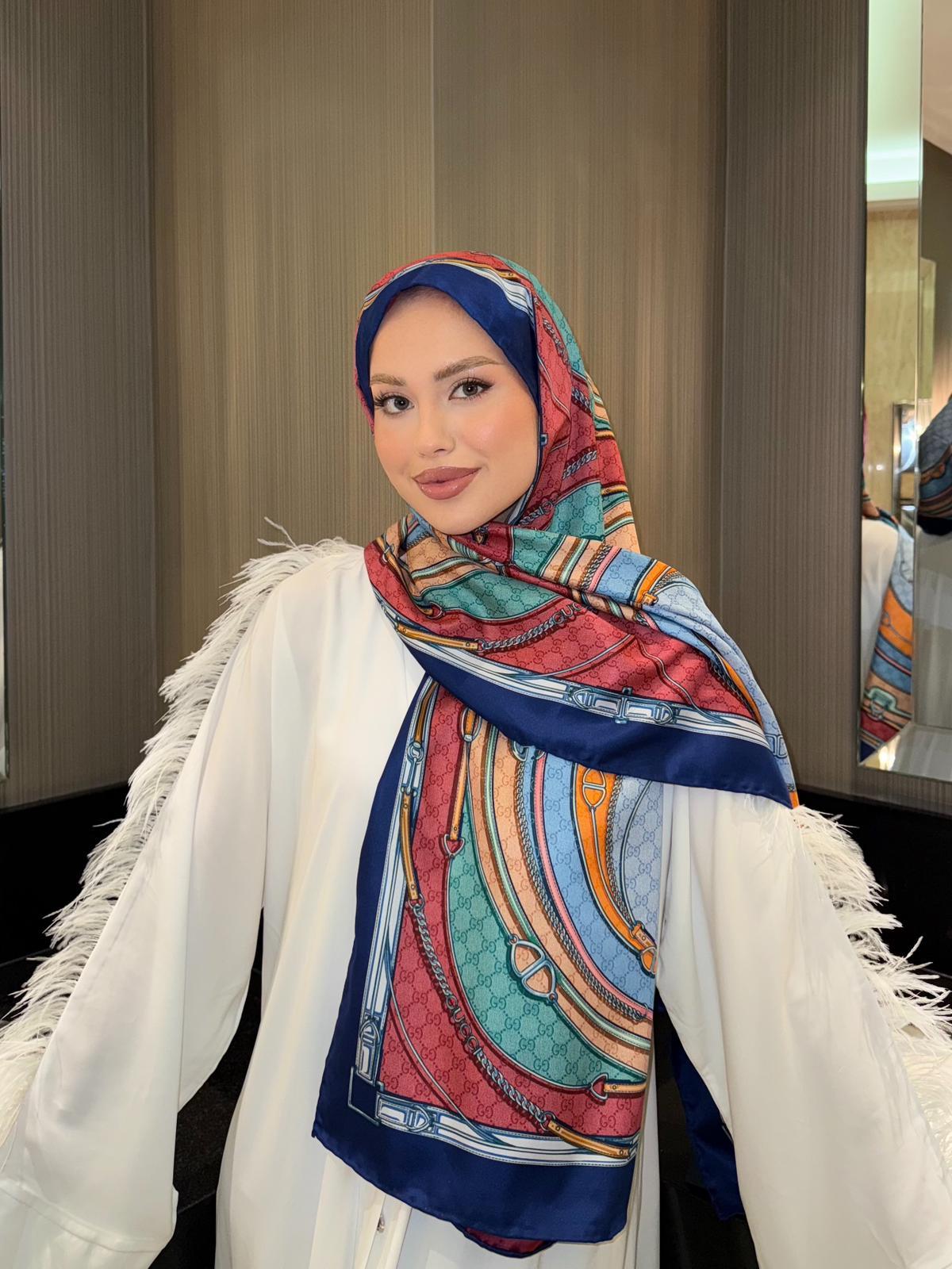 İthal Lacivert GC Desen Twill İpek Şal (LMS300)