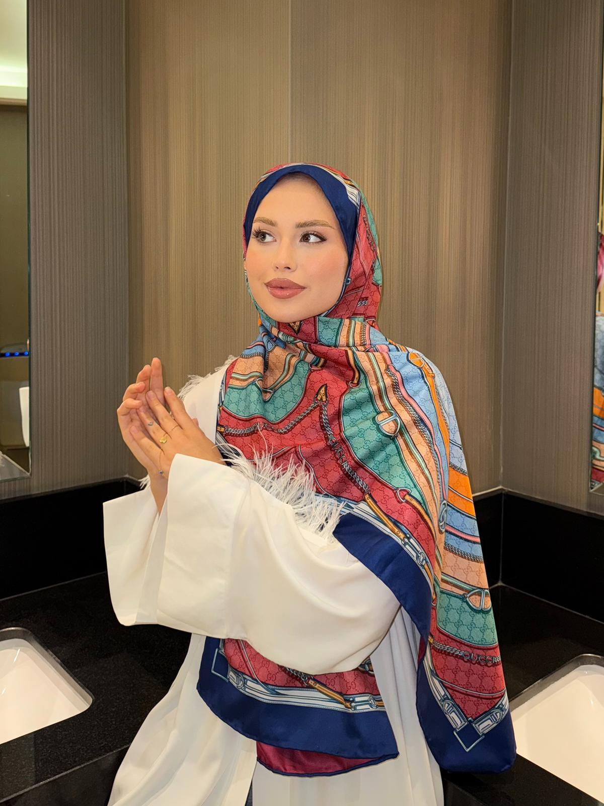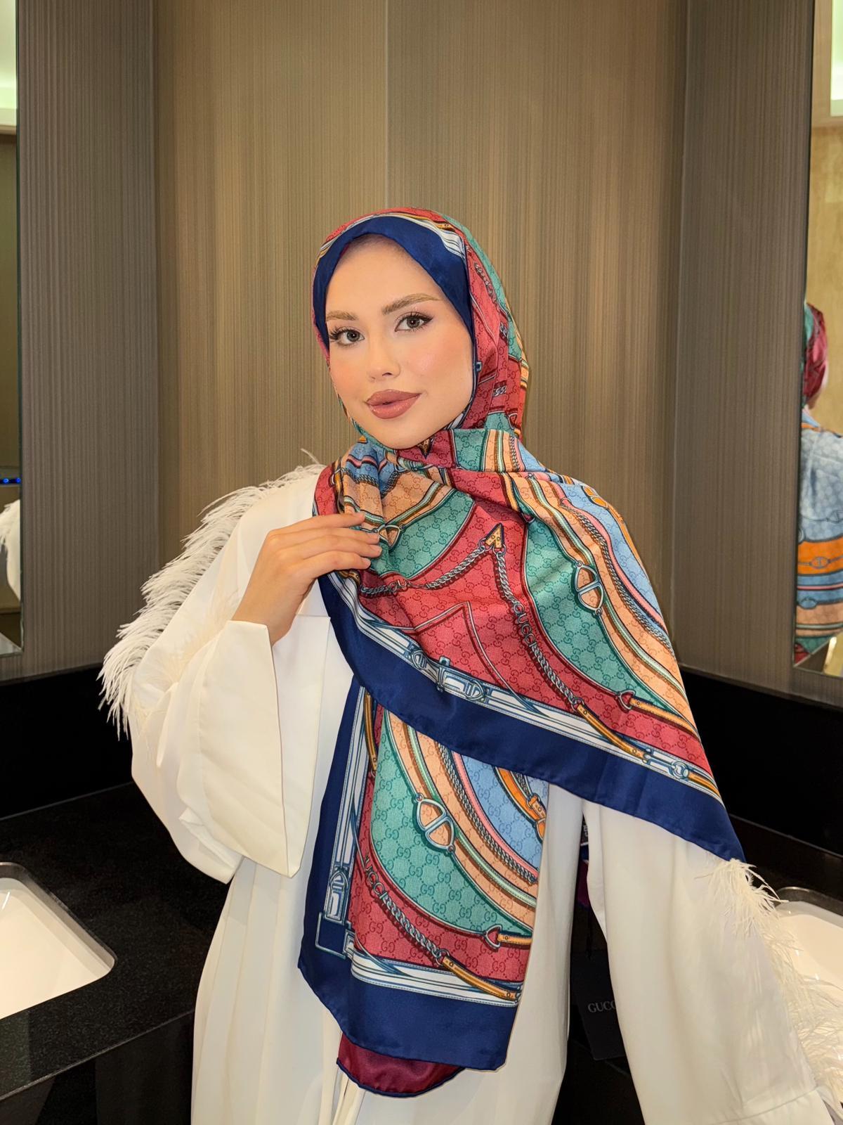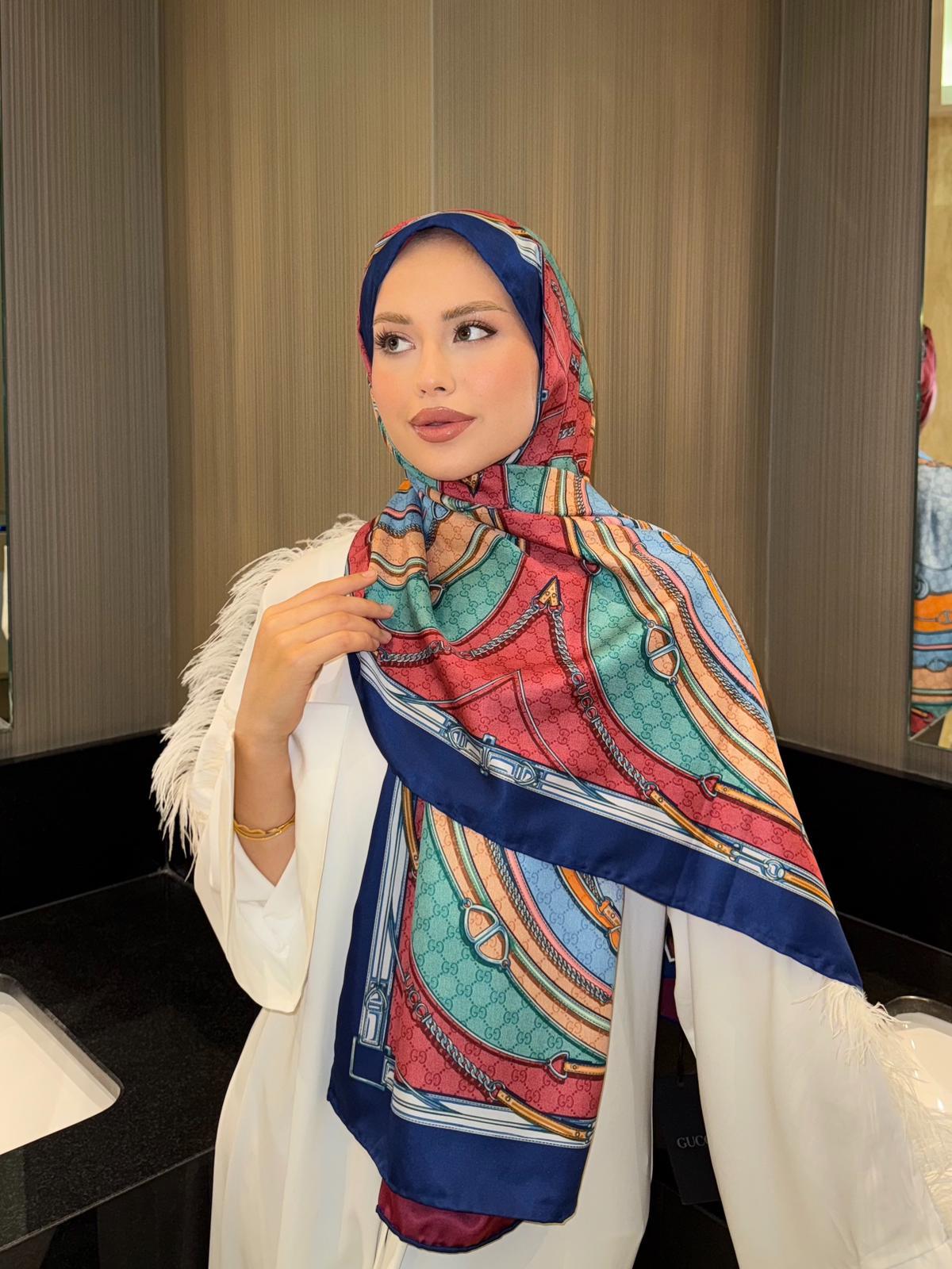 İthal Lacivert GC Desen Twill İpek Şal (LMS300)