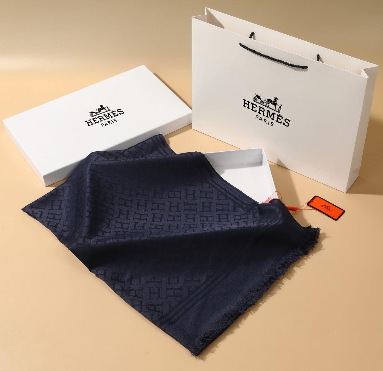 İthal Lacivert H Desen Koton İpek Şal (LMS35)