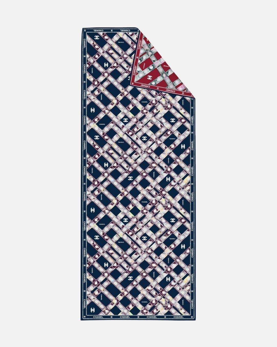 İthal Lacivert & Kırmızı CH Desen Twill İpek Şal (LMS292)