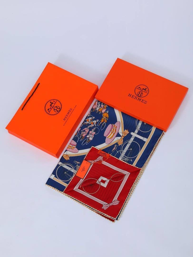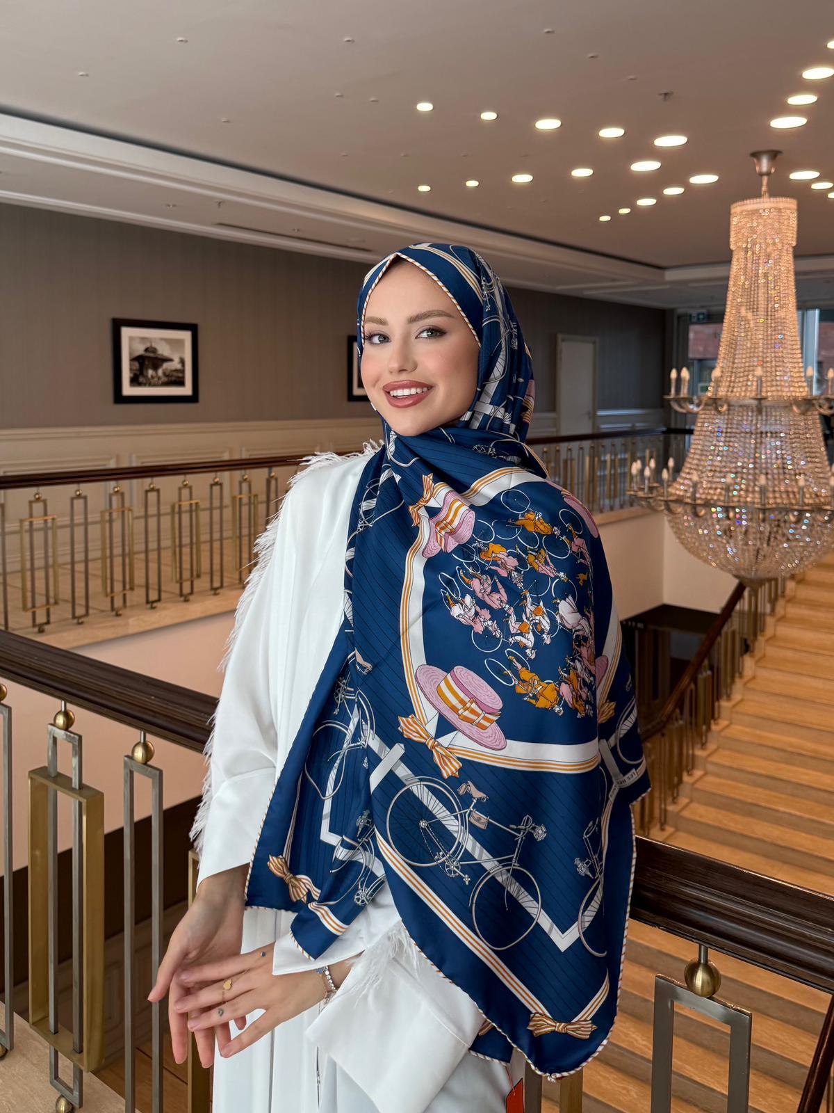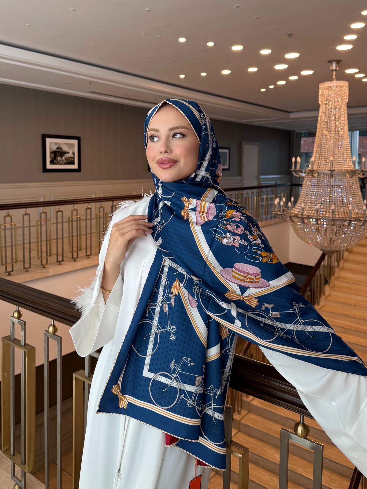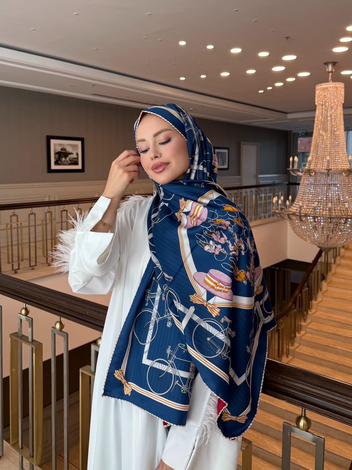 İthal Lacivert & Kırmızı H Desen Twill İpek Şal (LMS337)