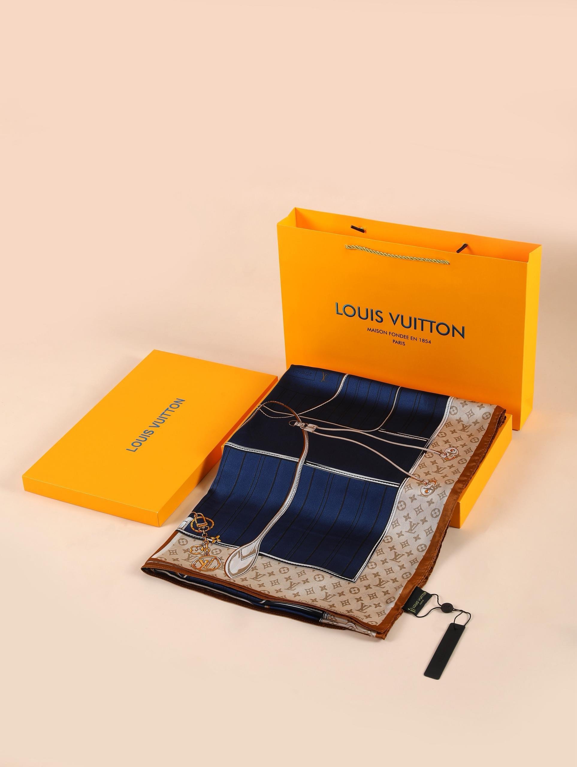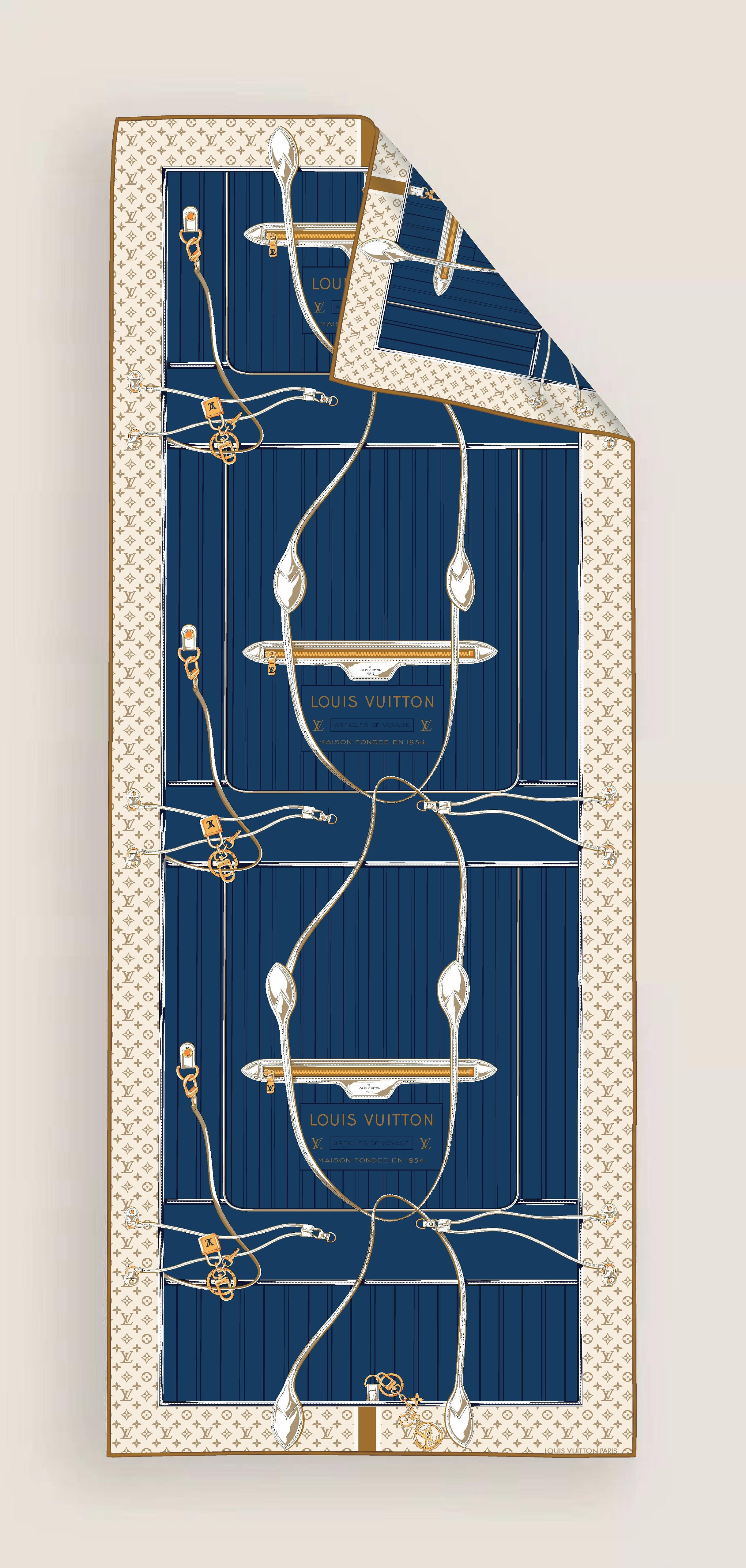 İthal Lacivert LV Desen Vual İpek Şal (LMS431)