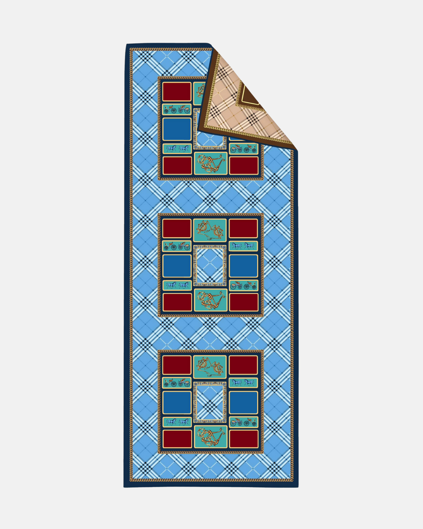 İthal Lacivert & Mocha B Desen Twill İpek Şal (LMS330)