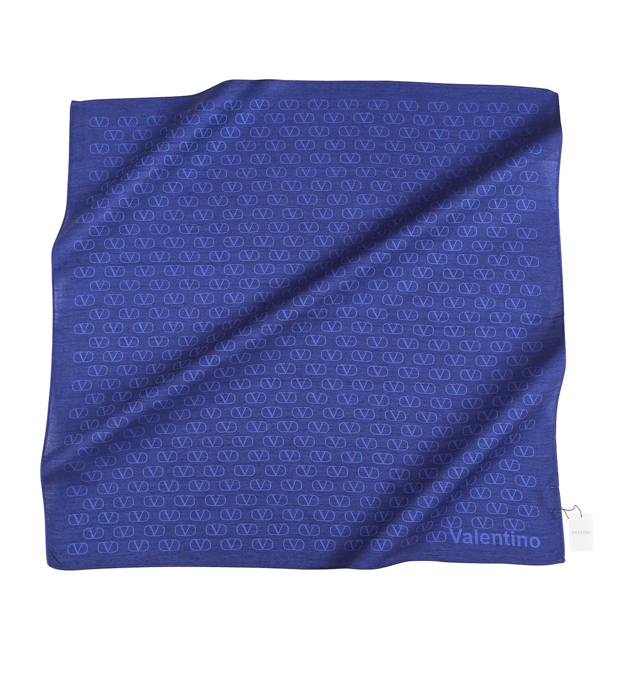 İthal Lacivert V Desen Yün İpek Eşarp (LMS269)