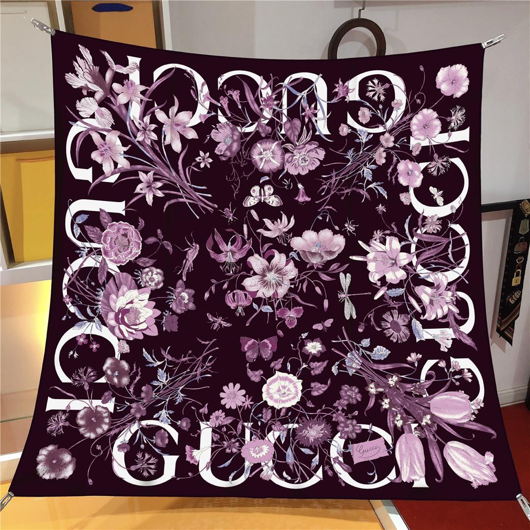 İthal Lila G Flower Desen Twill İpek Eşarp (LMS449)
