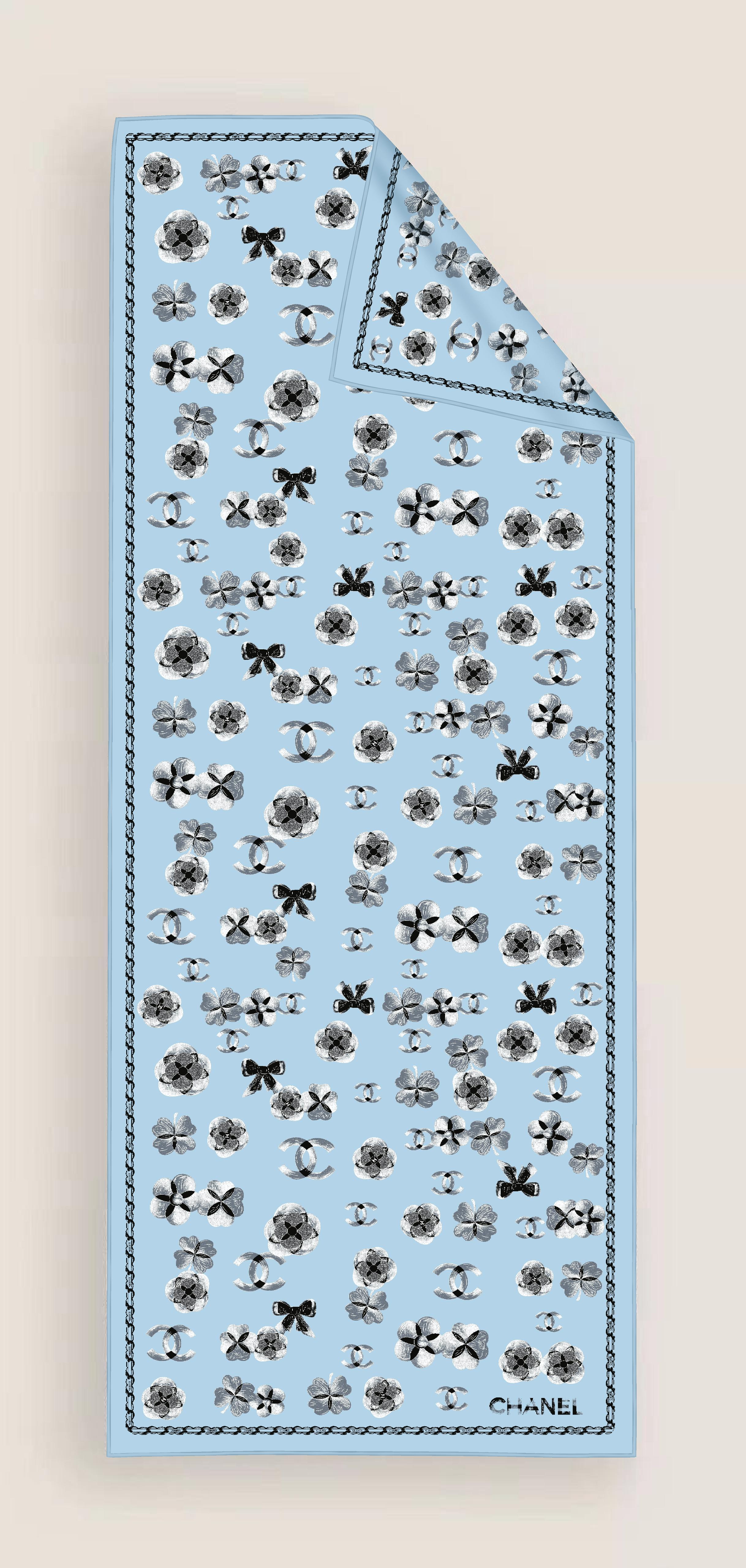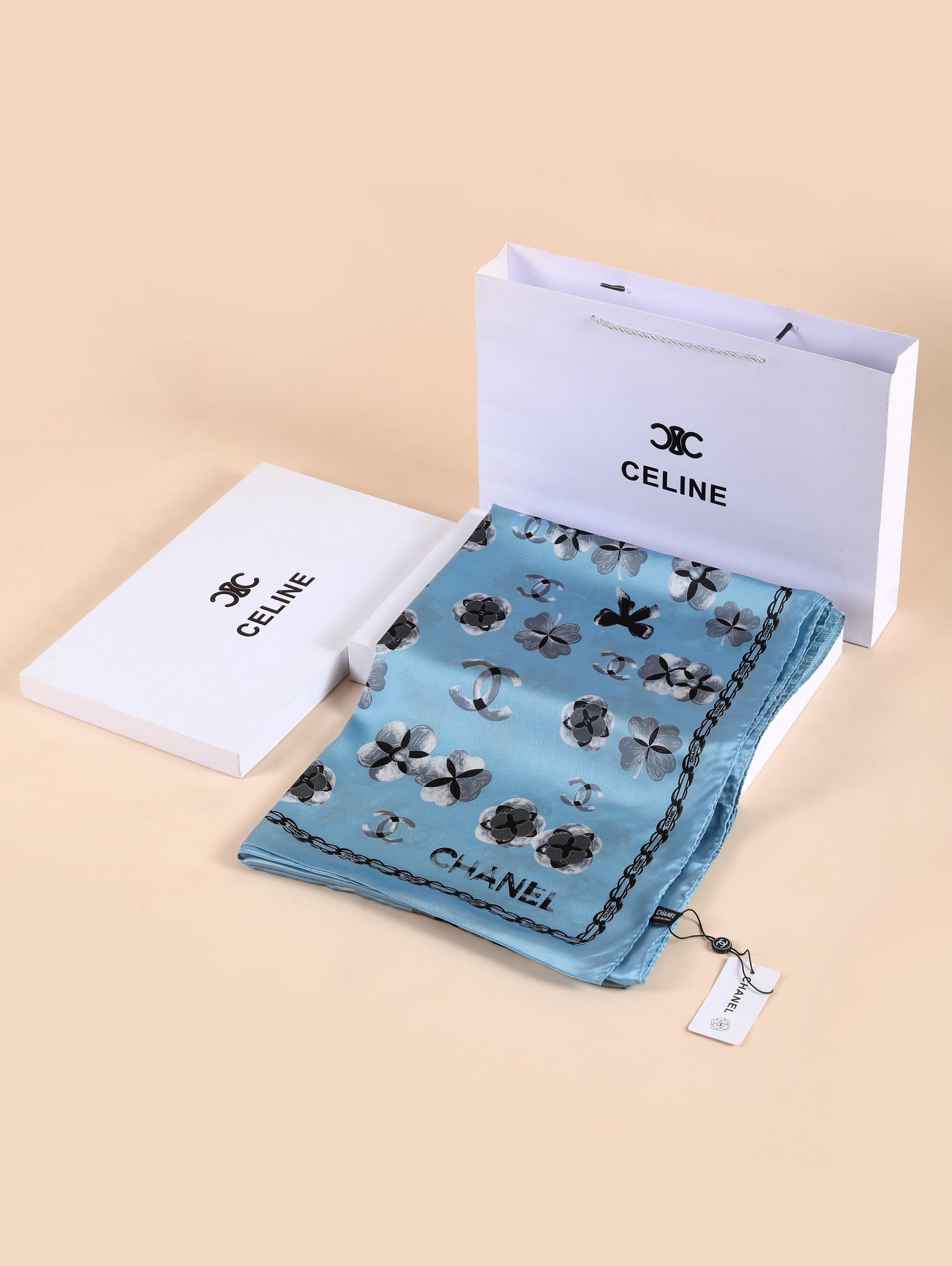 İthal Mavi CH Desen Vual İpek Şal (LMS403)