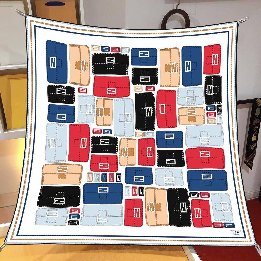 İthal Mavi & Fuşya F Bag Desen Twill İpek Eşarp (LMS574)