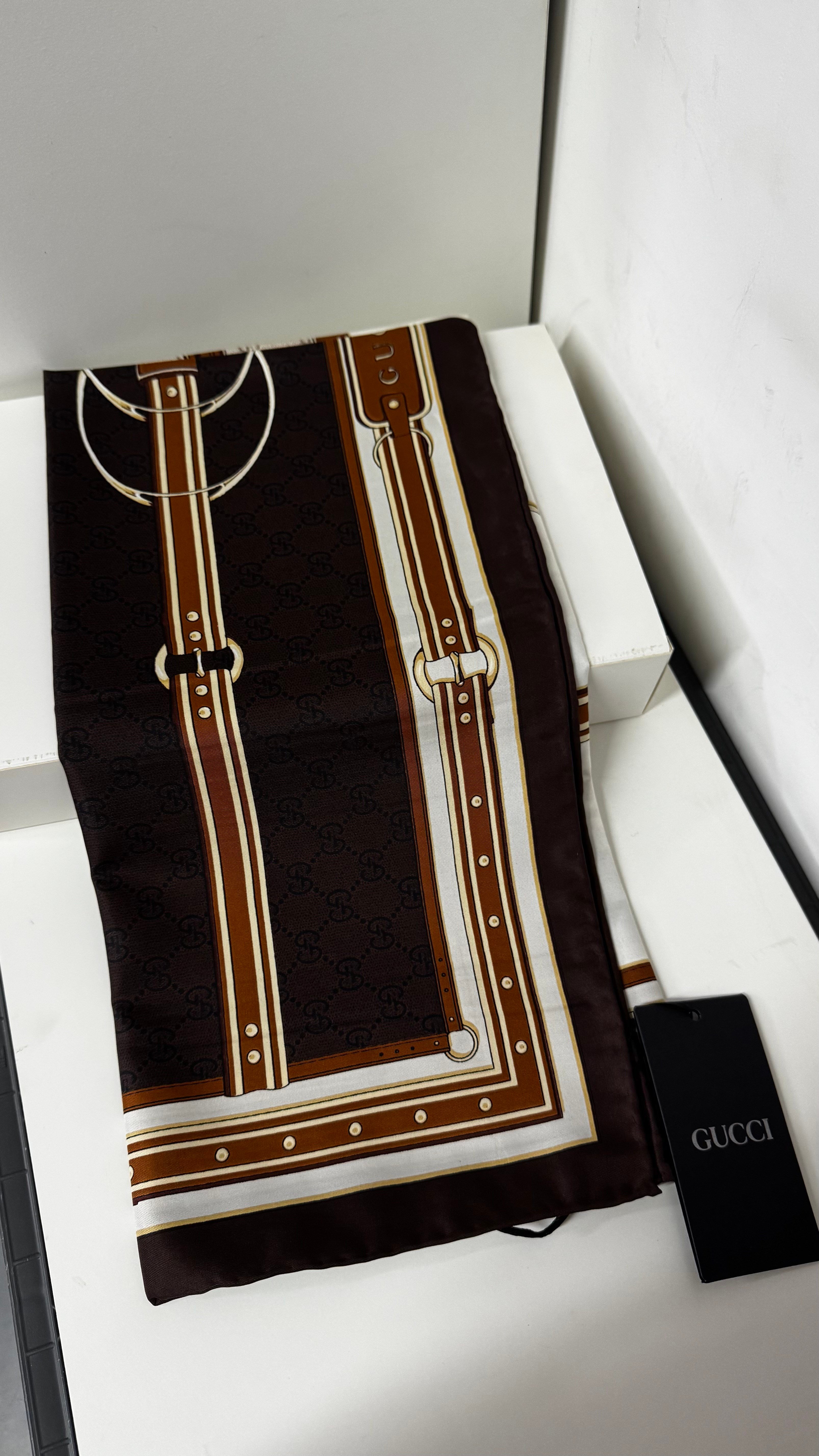 İthal Mocha & Acı Kahve G Belt Desen Twill İpek Eşarp (LUKS-E-Tİ-GB-03)