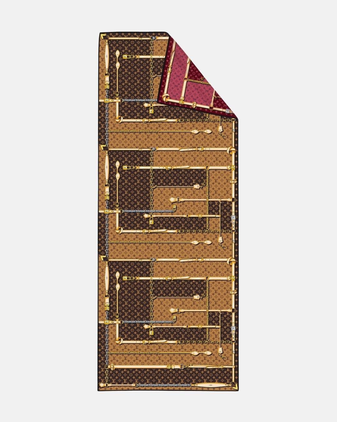 İthal Mocha & Bordo LV Desen Twill İpek Şal (LMS312)