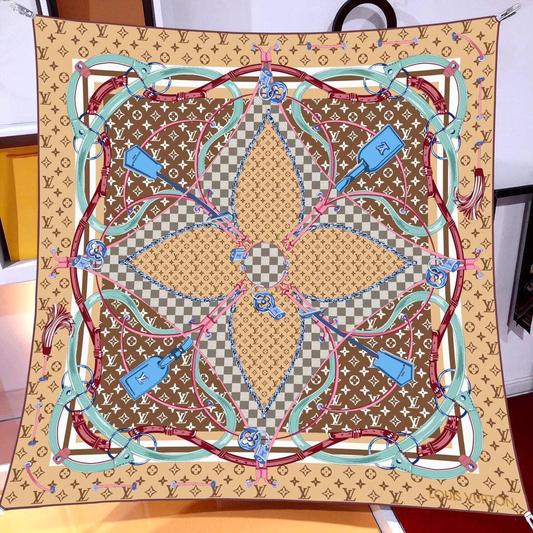 İthal Mocha LV Kilit Desen Twill İpek Eşarp (LMS572)