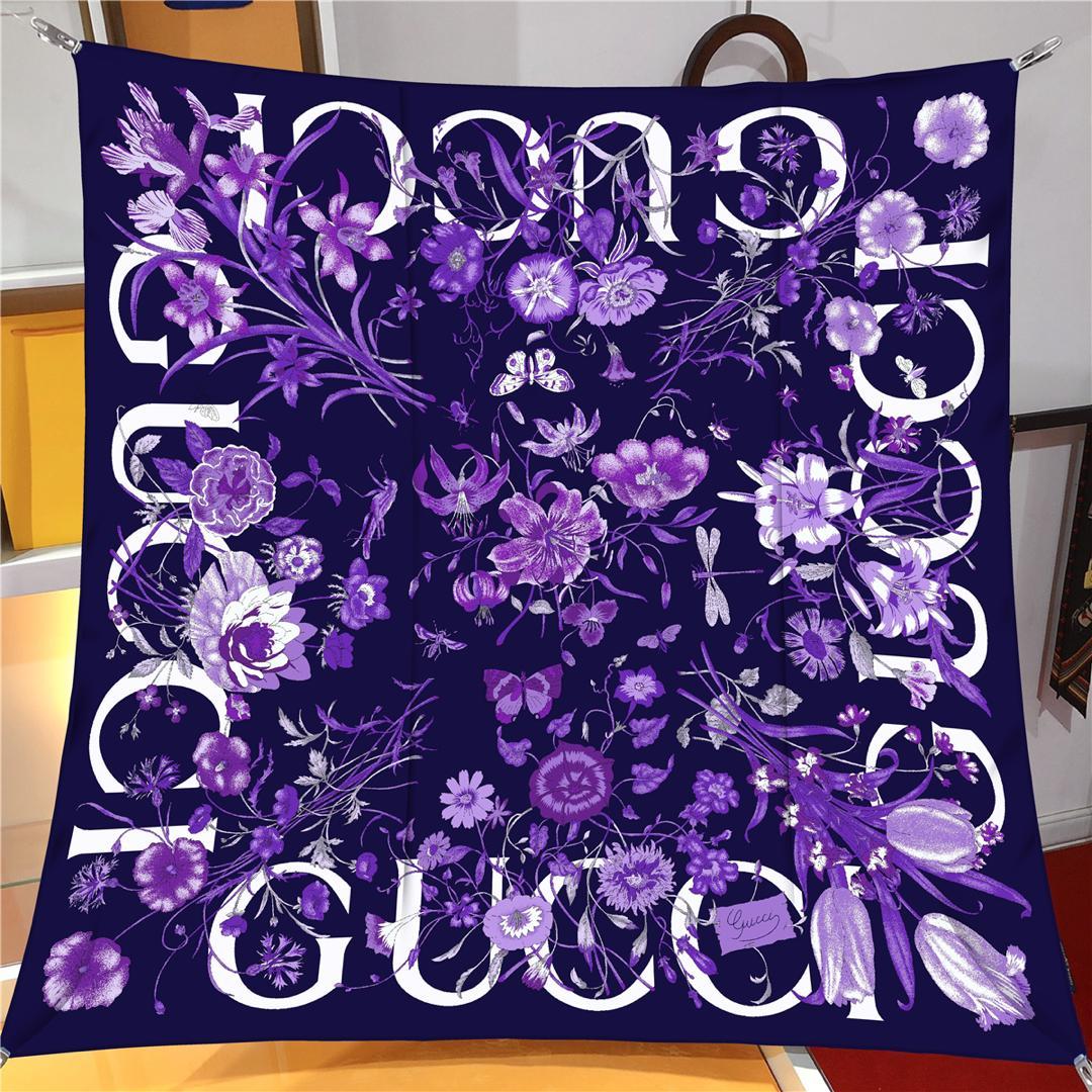 İthal Mor G Flower Desen Twill İpek Eşarp (LMS454)