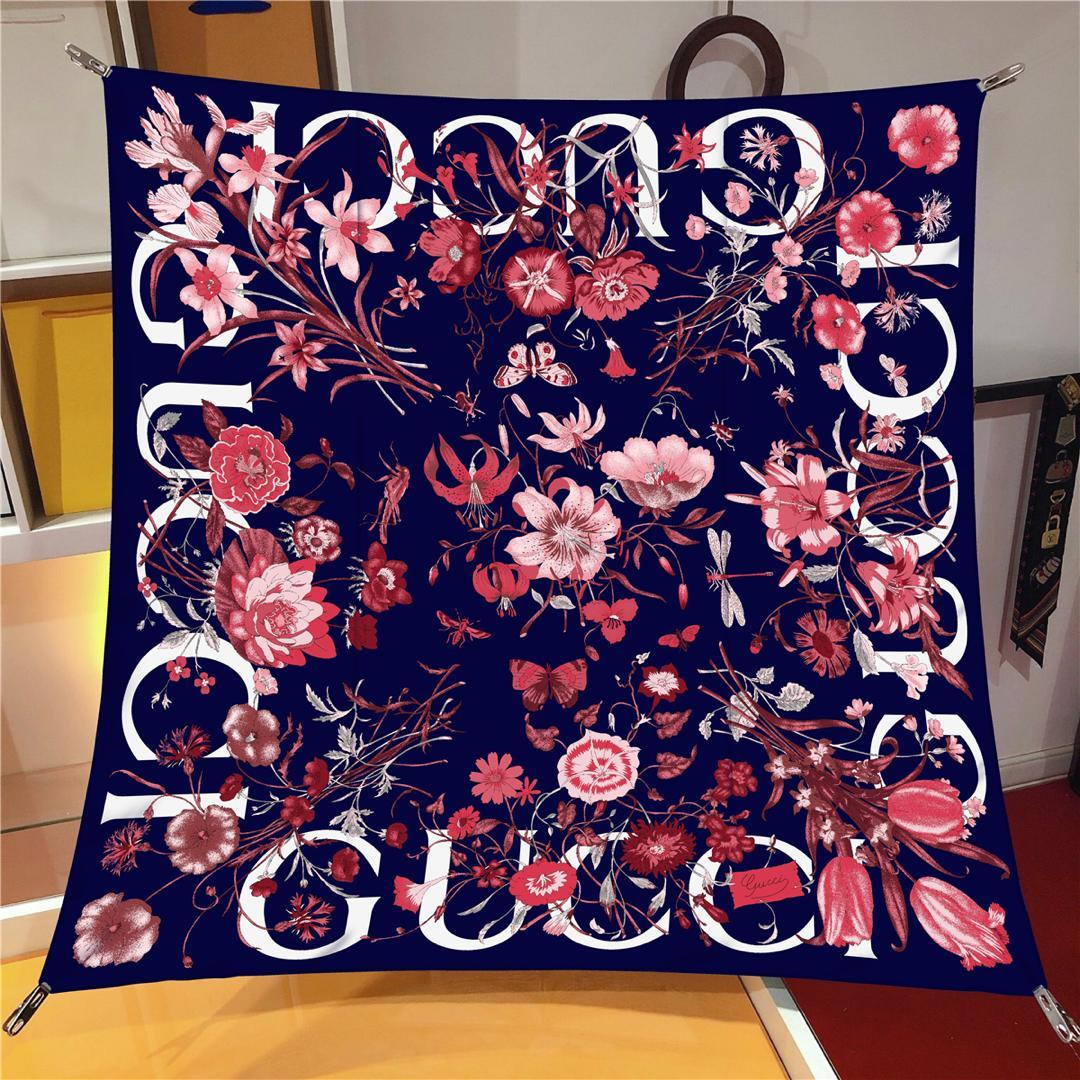 İthal Nar Çiçeği G Flower Desen Twill İpek Eşarp (LMS446)