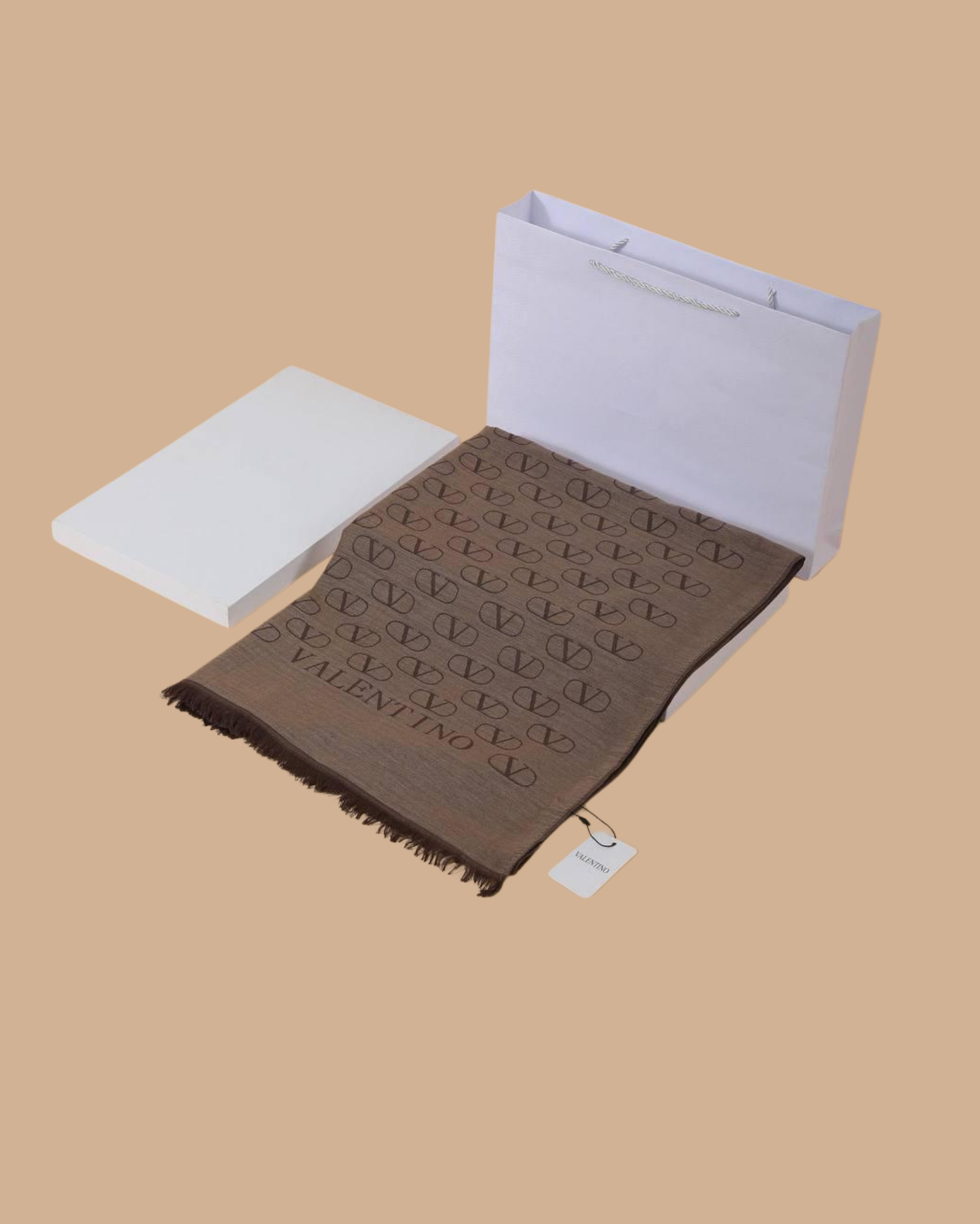 İthal Pastel Kahve V Desen Yün İpek Şal (LMS111)