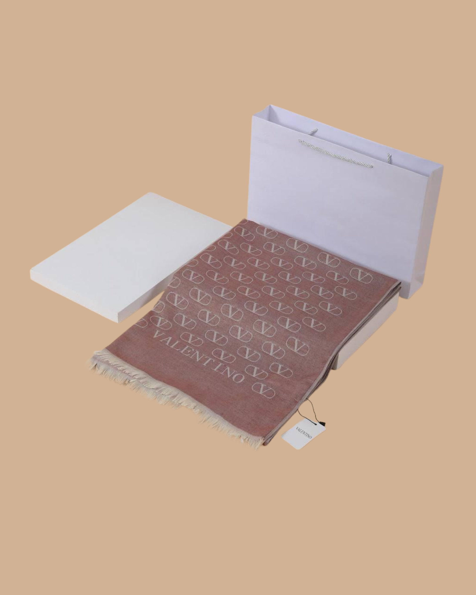 İthal Pastel Pembe V Desen Yün İpek Şal (LMS112)