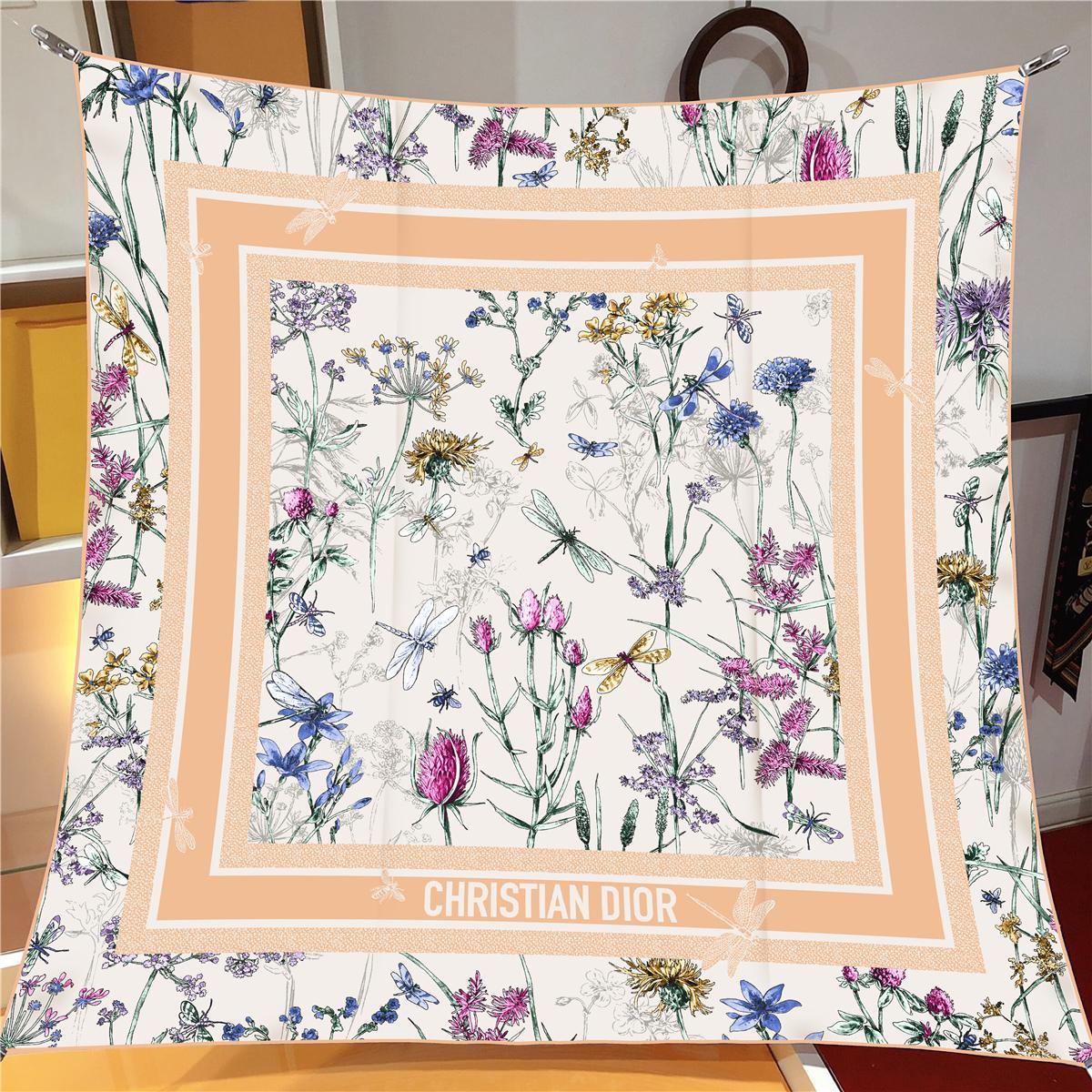 İthal Pastel Turuncu D Flower Desen Twill İpek Eşarp (LMS552)