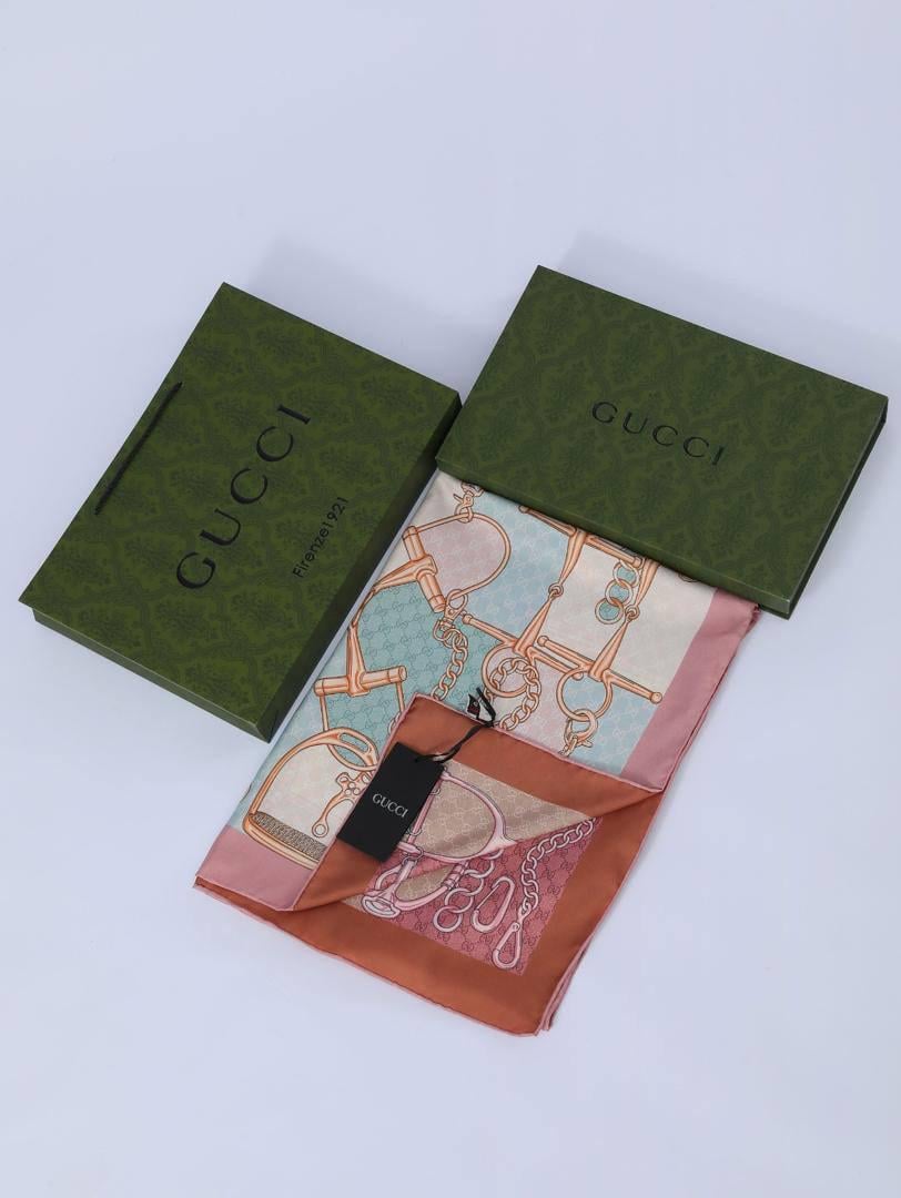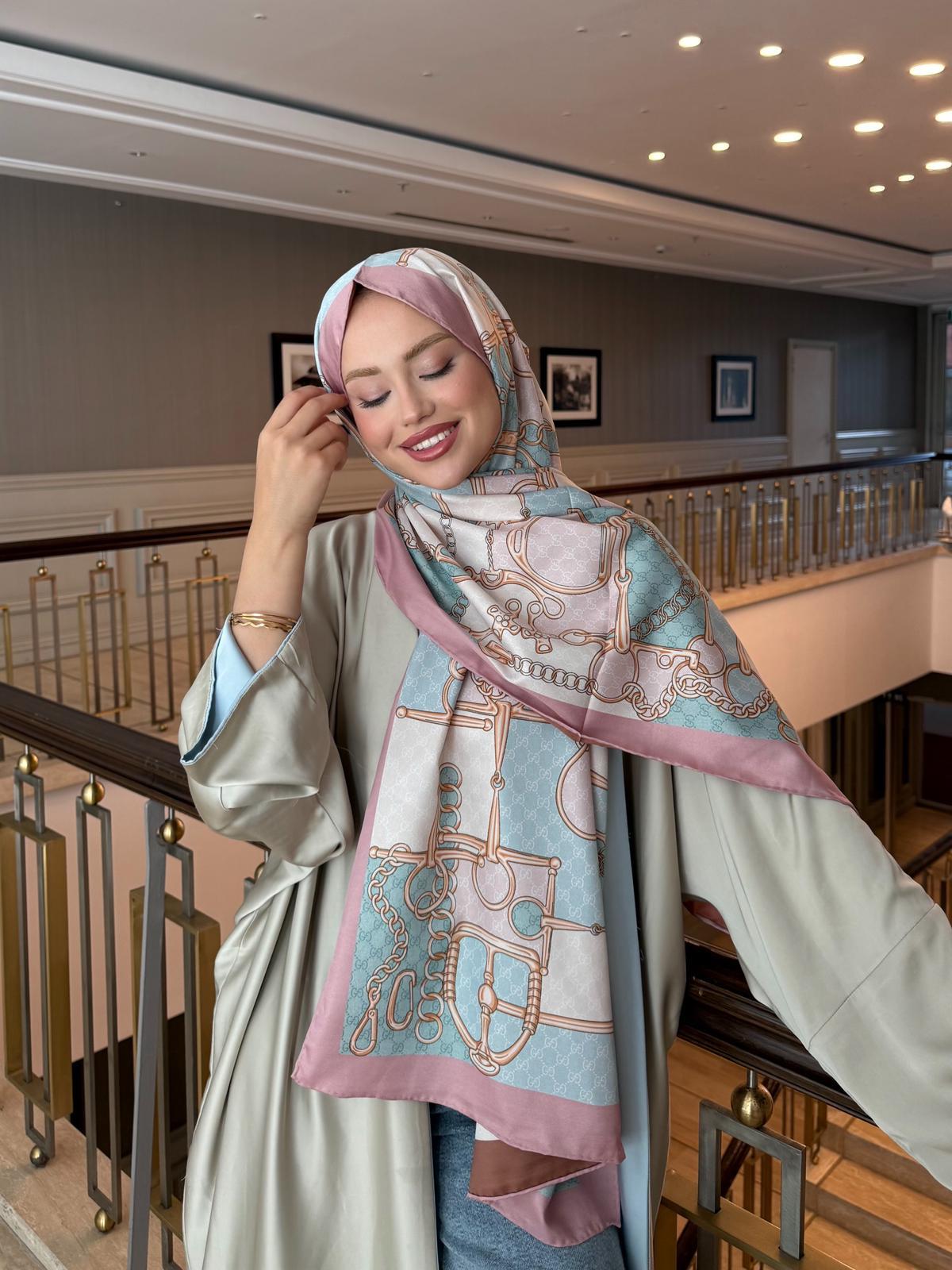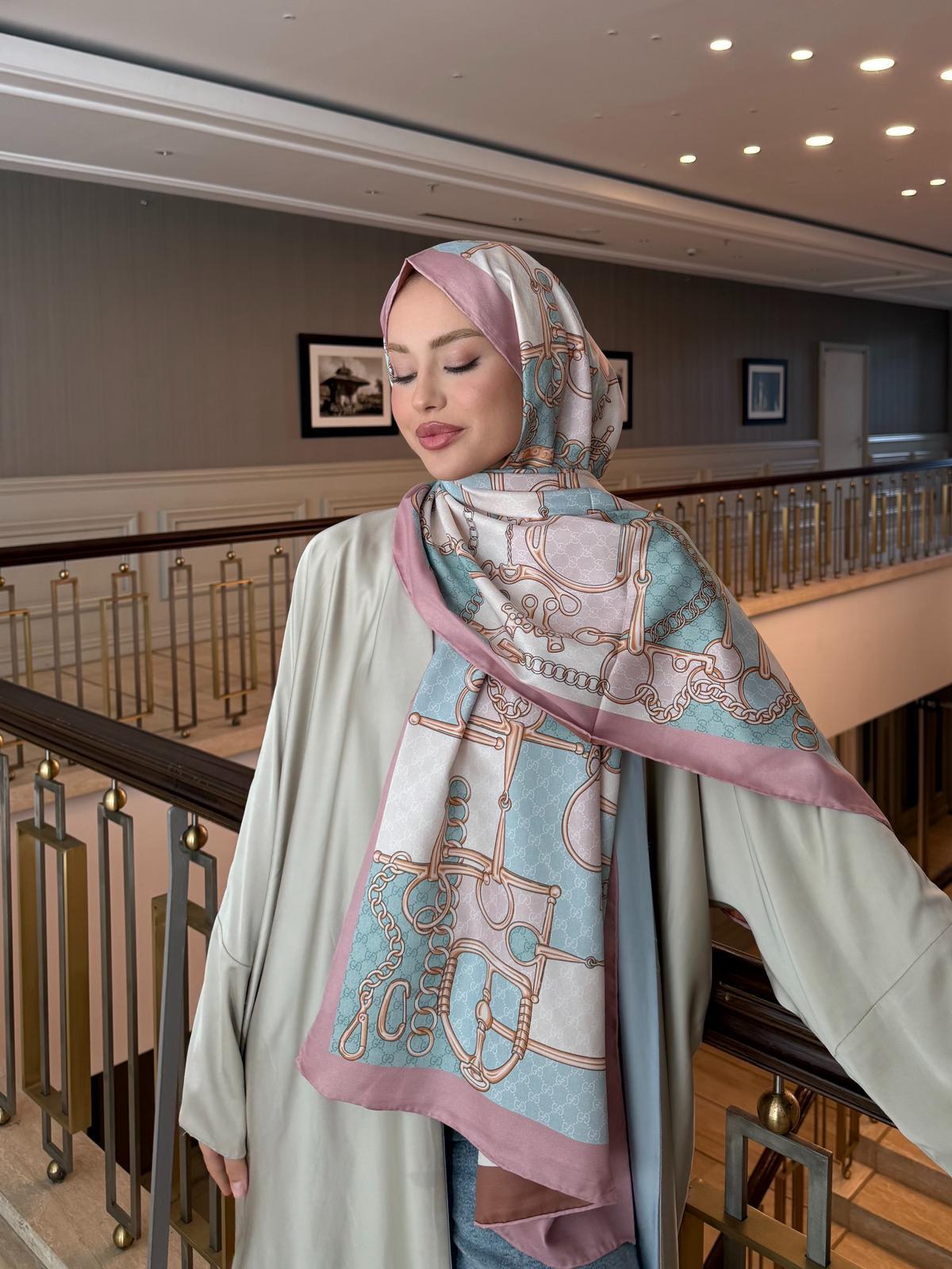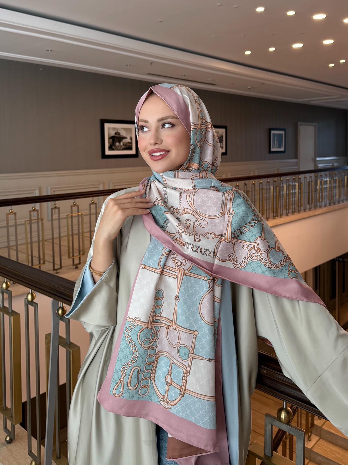 İthal Pudra Pembe & Kiremit GC Zincir Desen Twill İpek Şal (LMS323)