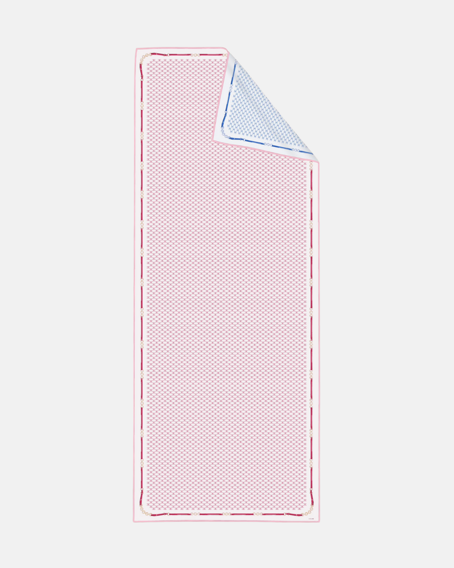İthal Şeker Pembe & Buz Mavi CE Desen Twill İpek Şal (LMS317)