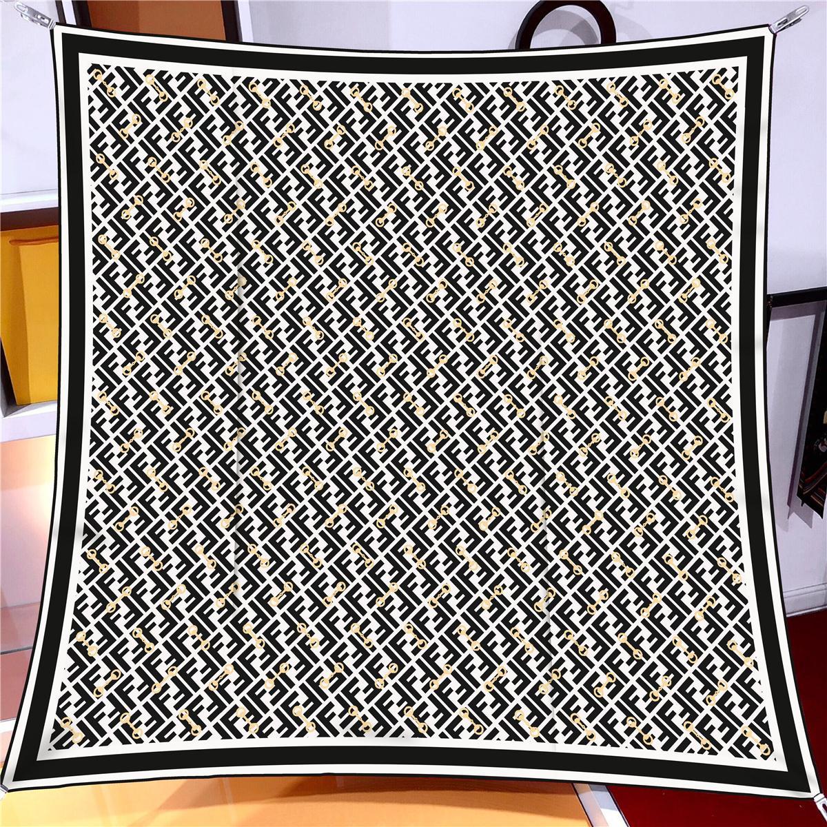 İthal Siyah & Beyaz F Kilit Desen Twill İpek Eşarp (LMS504)