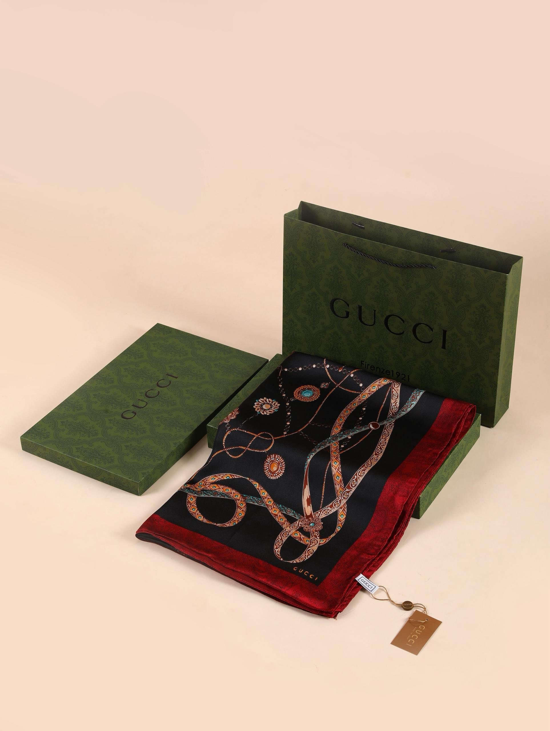 İthal Siyah & Bordo G Desen Vual İpek Şal (LMS414)