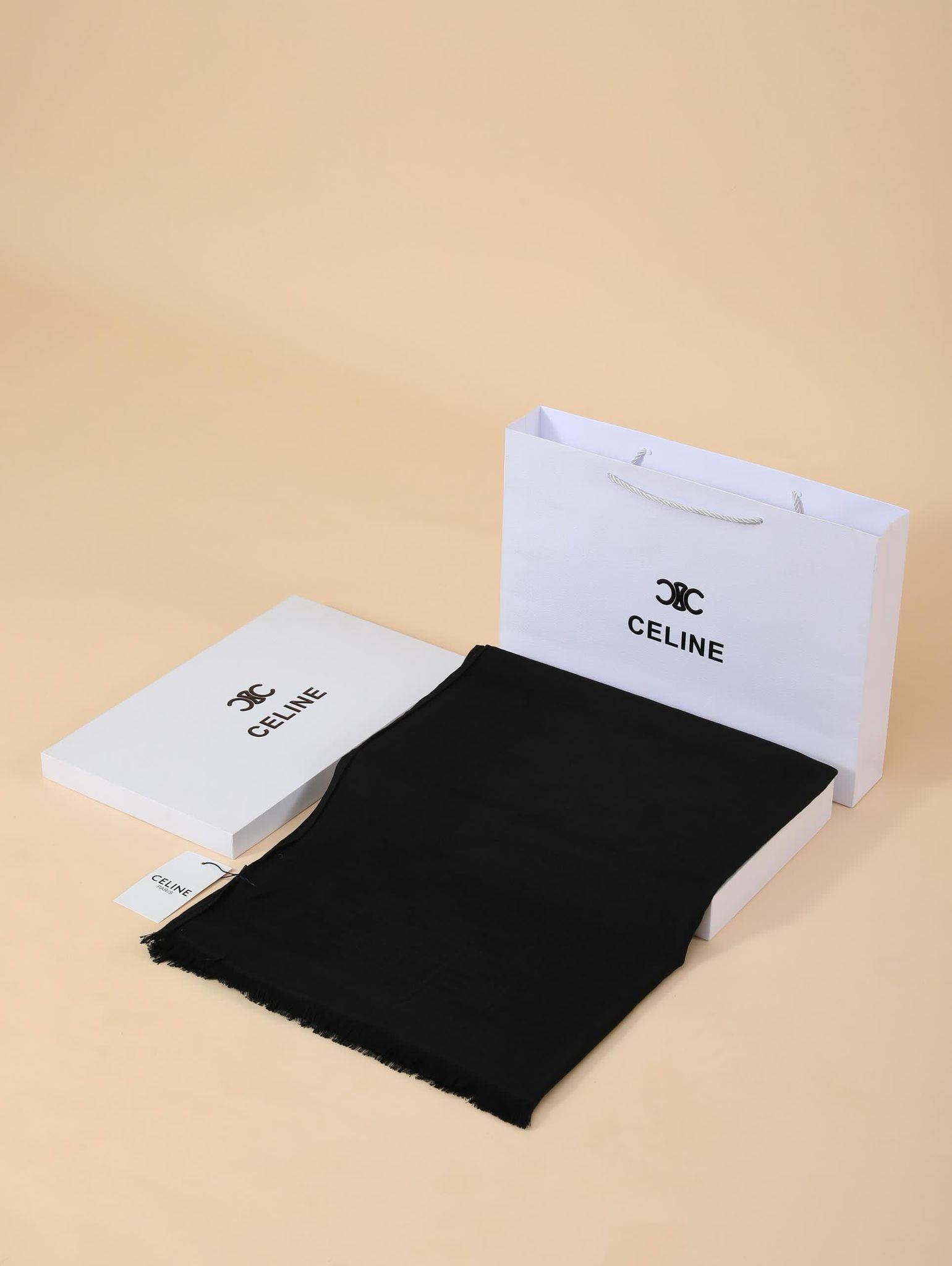 İthal Siyah CE Desen Yün İpek Şal (LMS217)