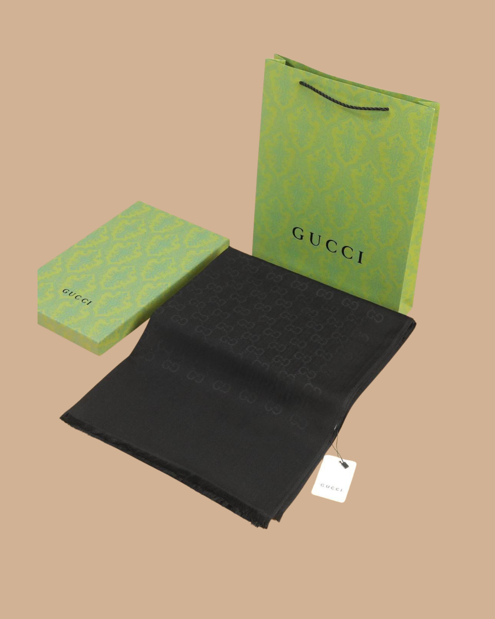 İthal Siyah G Desen Yün İpek Şal (LMS147)