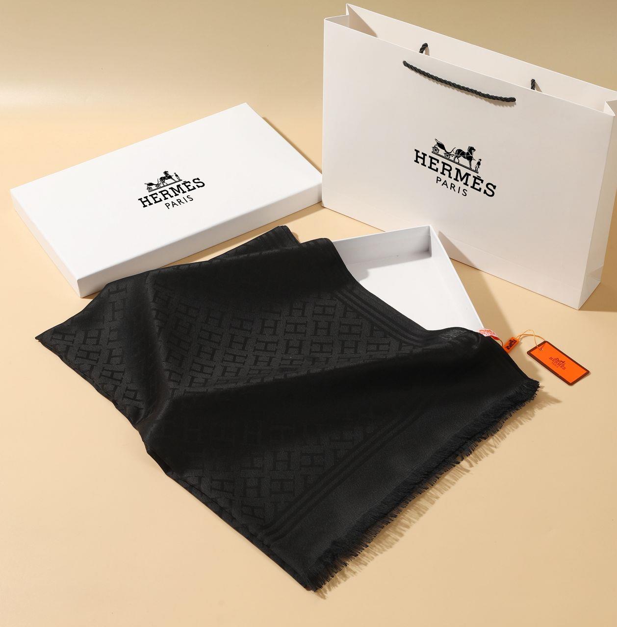 İthal Siyah H Desen Koton İpek Şal (LMS43)