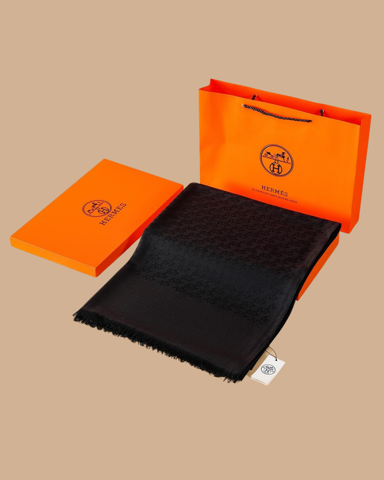İthal Siyah H Desen Yün İpek Şal (LMS134)