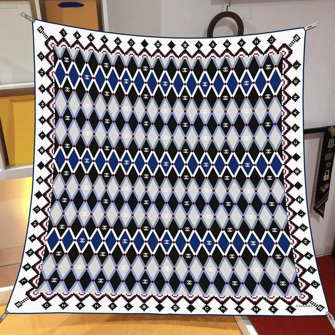 İthal Siyah & Lacivert CH Desen Twill İpek Eşarp (LMS585)