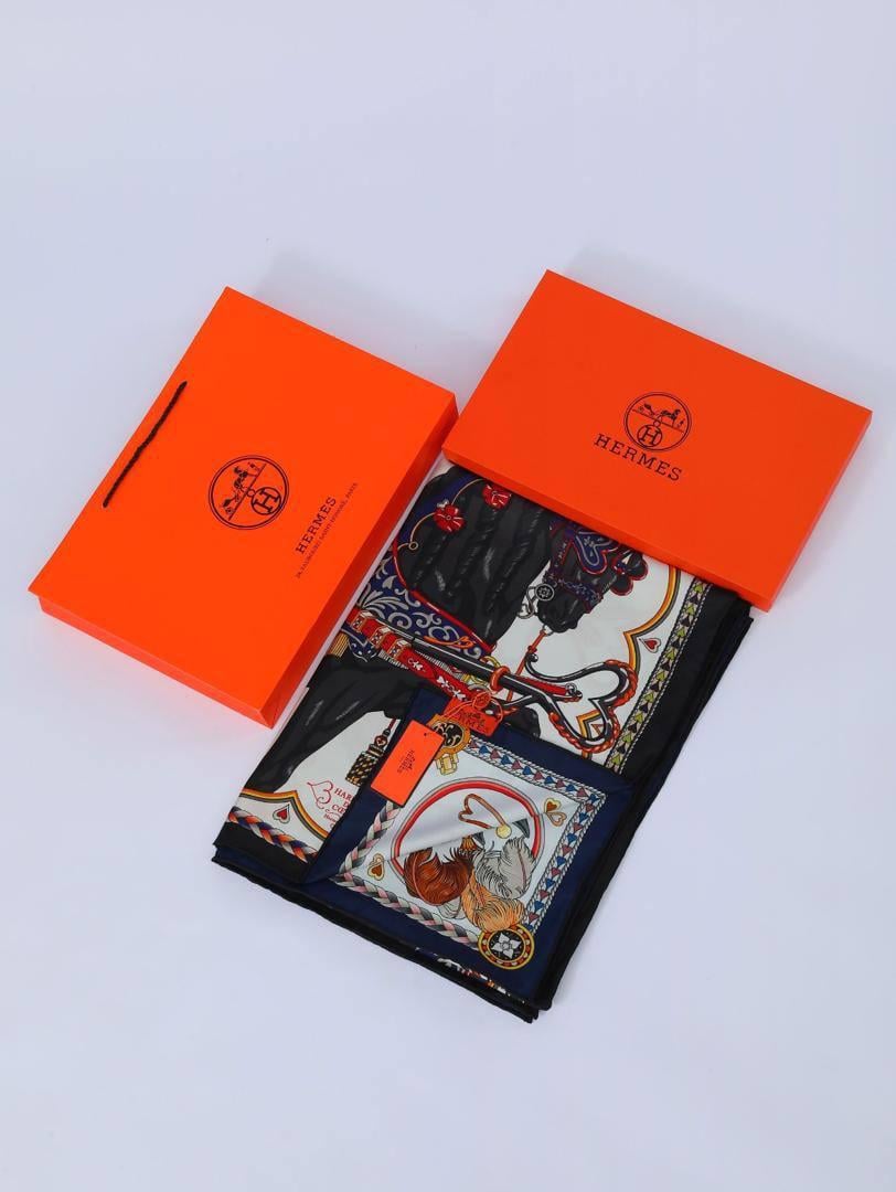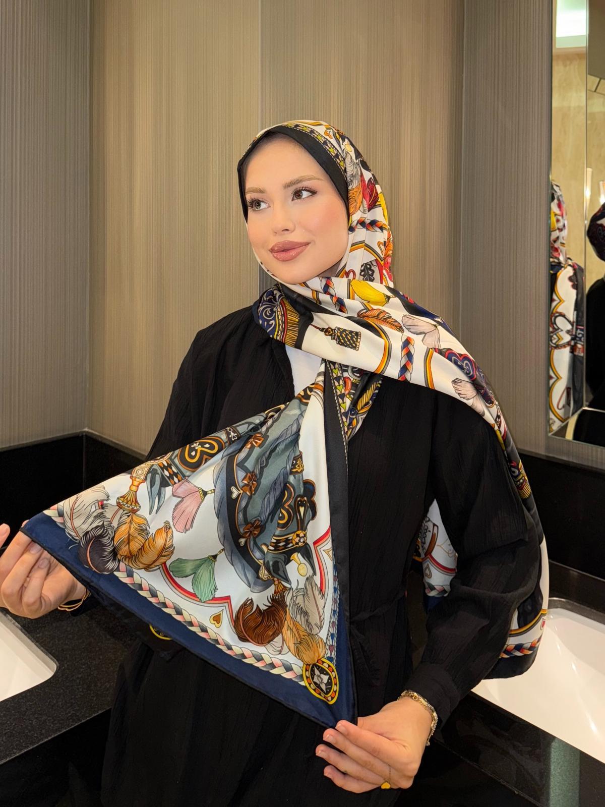 İthal Siyah & Lacivert H Halat Desen Twill İpek Şal (LMS348)