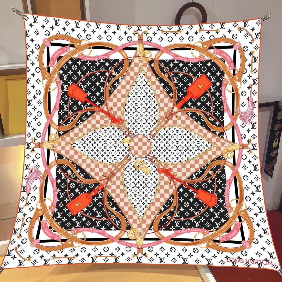 İthal Siyah LV Kilit Desen Twill İpek Eşarp (LMS568)