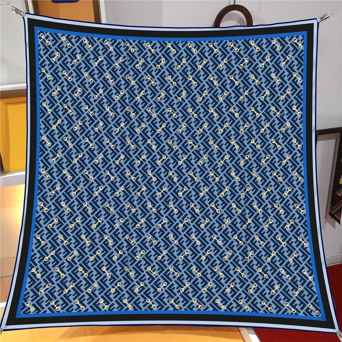 İthal Siyah & Mavi F Kilit Desen Twill İpek Eşarp (LMS498)