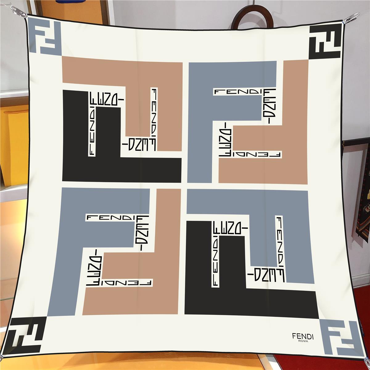 İthal Siyah & Mocha F Square Desen Twill İpek Eşarp (LMS487)