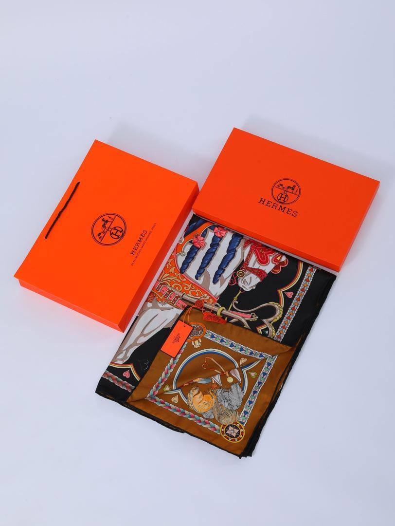 İthal Siyah & Mocha H Halat Desen Twill İpek Şal (LMS350)