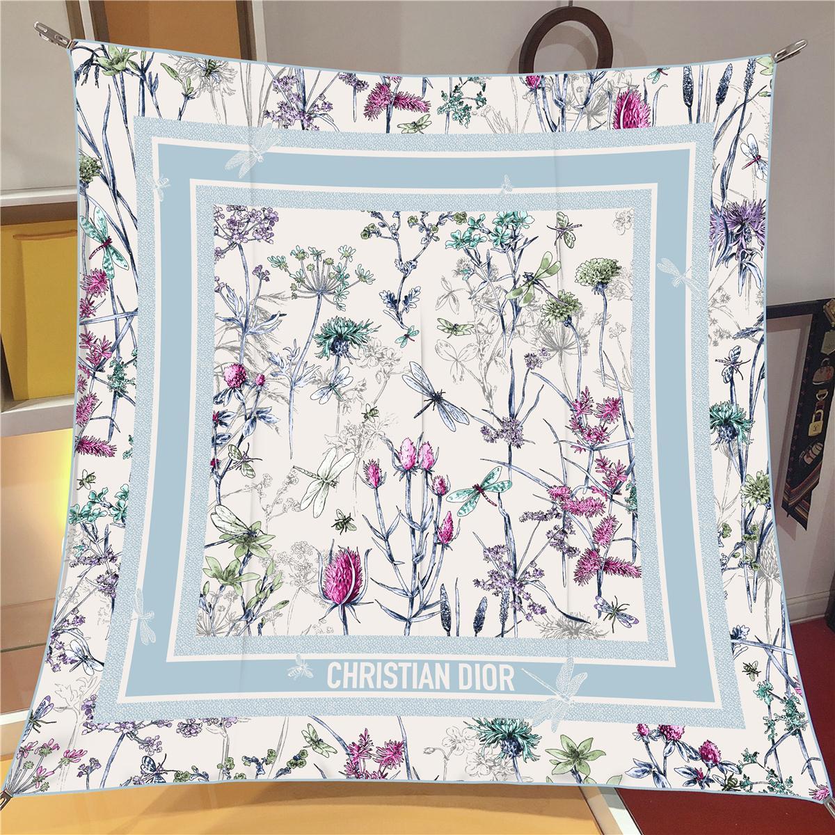 İthal Soft Mavi D Flower Desen Twill İpek Eşarp (LMS550)