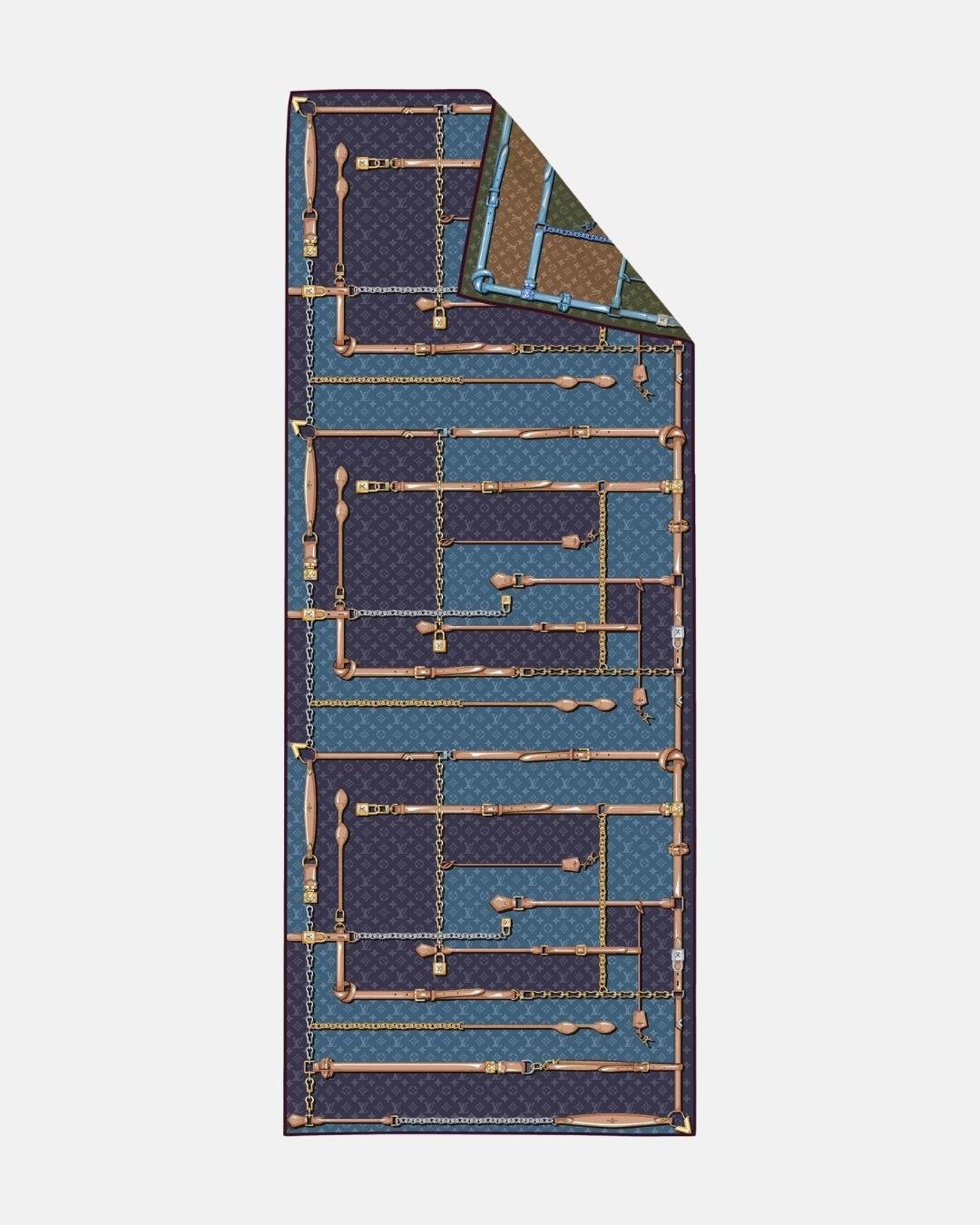 İthal Soft Mavi & Haki LV Desen Twill İpek Şal (LMS314)