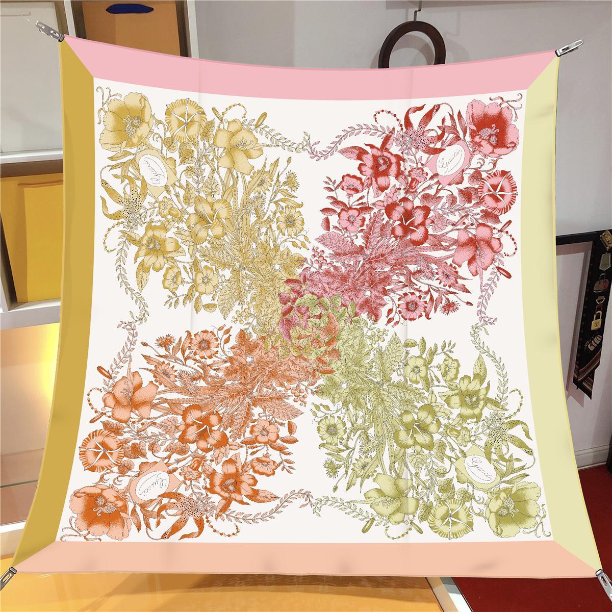 İthal Soft Pembe & Gold G Sarmaşık Twill İpek Eşarp (LMS515)