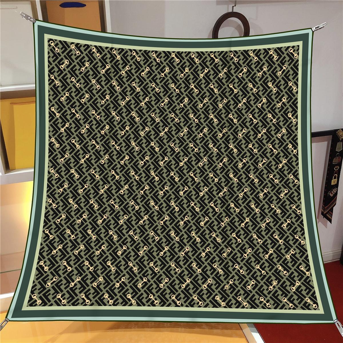 İthal Soft Yeşil & Haki F Kilit Desen Twill İpek Eşarp (LMS502)