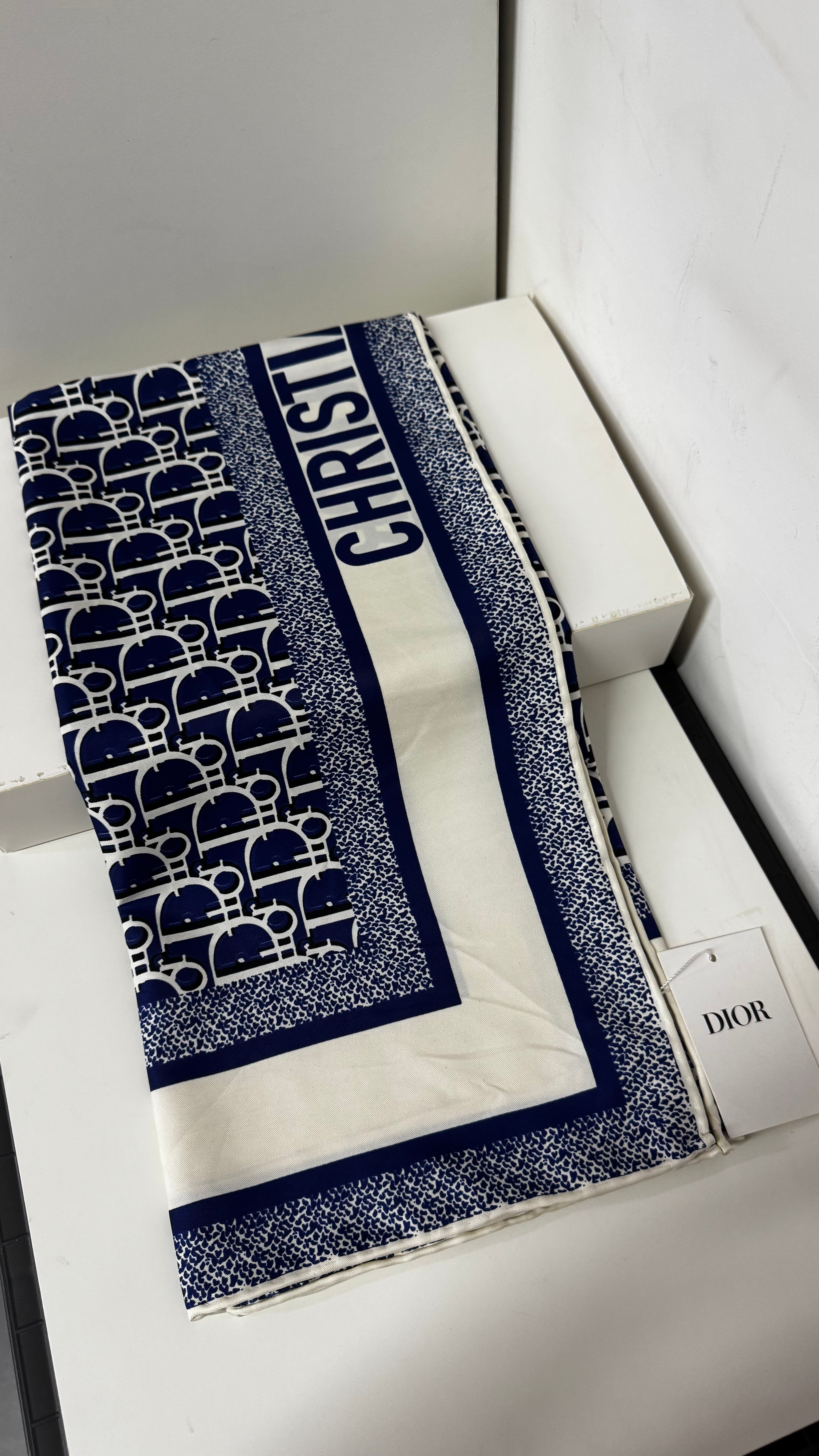 İthal Taş & Lacivert CD Monogram Desen Twill İpek Eşarp (LUKS-E-Tİ-CDM-03)
