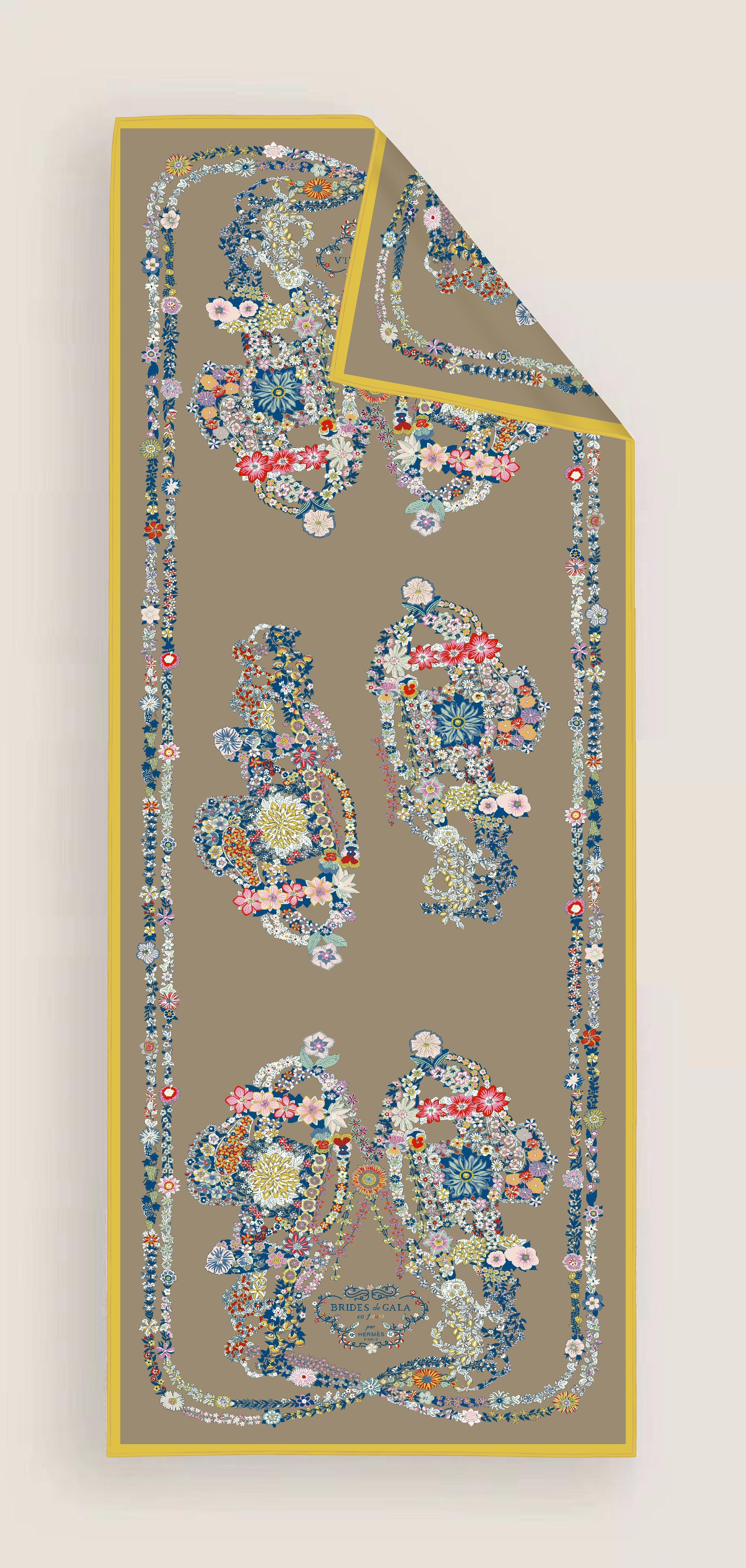 İthal Toprak & Hardal H Desen Vual İpek Şal (LMS424)
