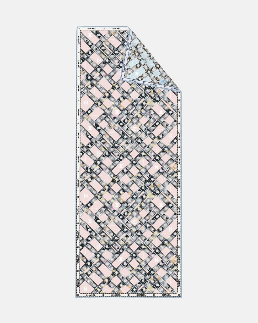 İthal Toz Pembe & Pastel Yeşil CH Desen Twill İpek Şal (LMS297)